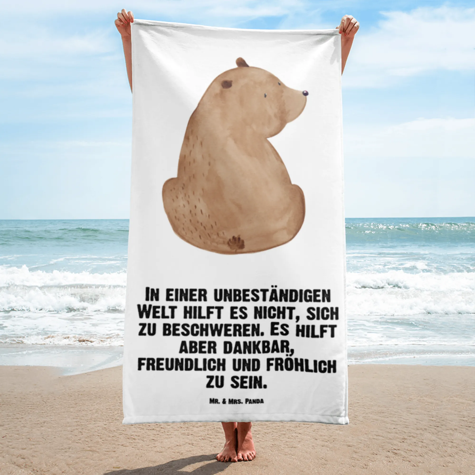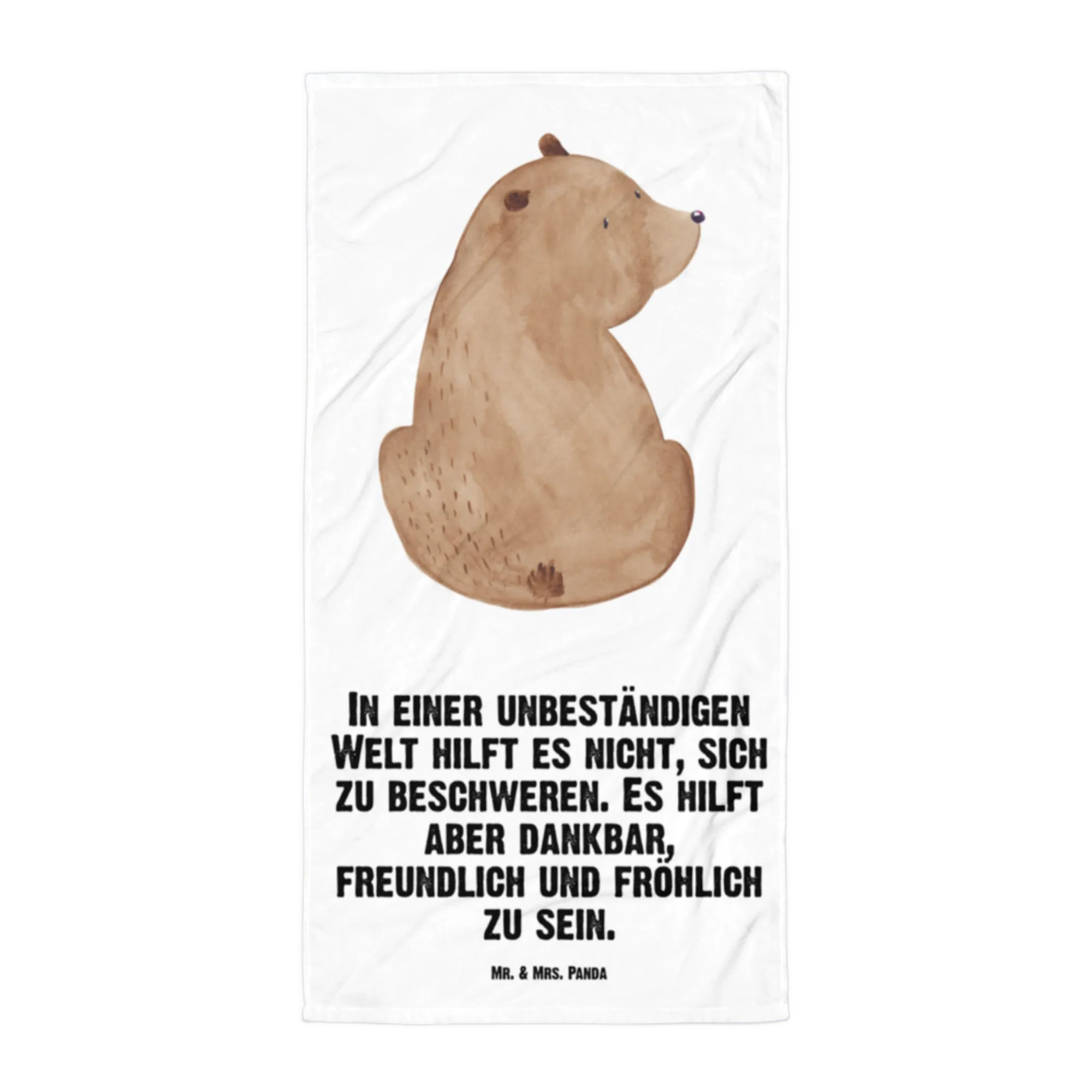 XL bath towel bear shoulder look - with saying - White