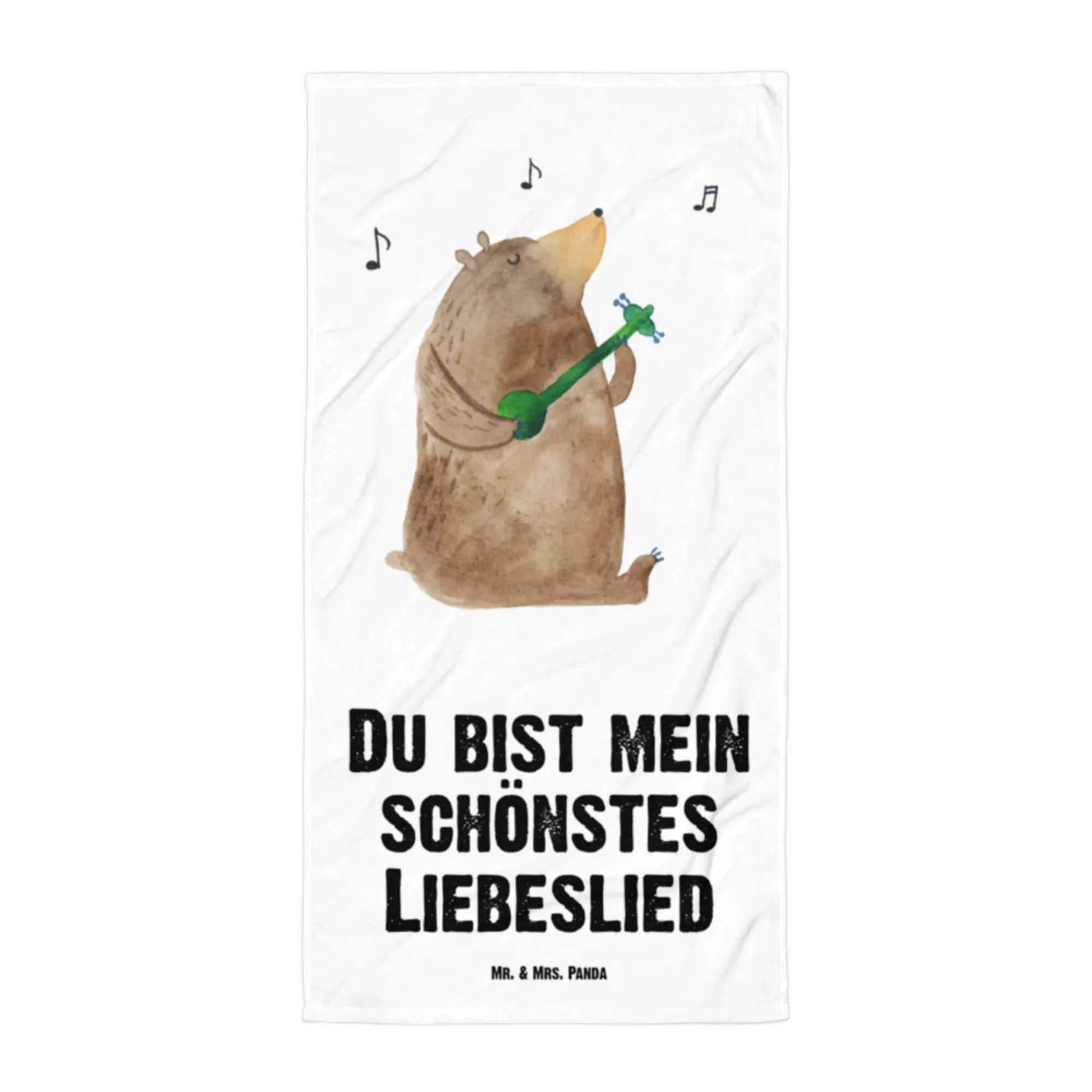 Designed with an endearing illustration of a bear playing a guitar, it carries the essence of a love song and comes with the heartfelt slogan "Du bist mein schönstes Liebeslied," translating to "You are my most beautiful love song." This towel is a beautiful way to express your feelings, giving it a personal touch that will leave a lasting impression.