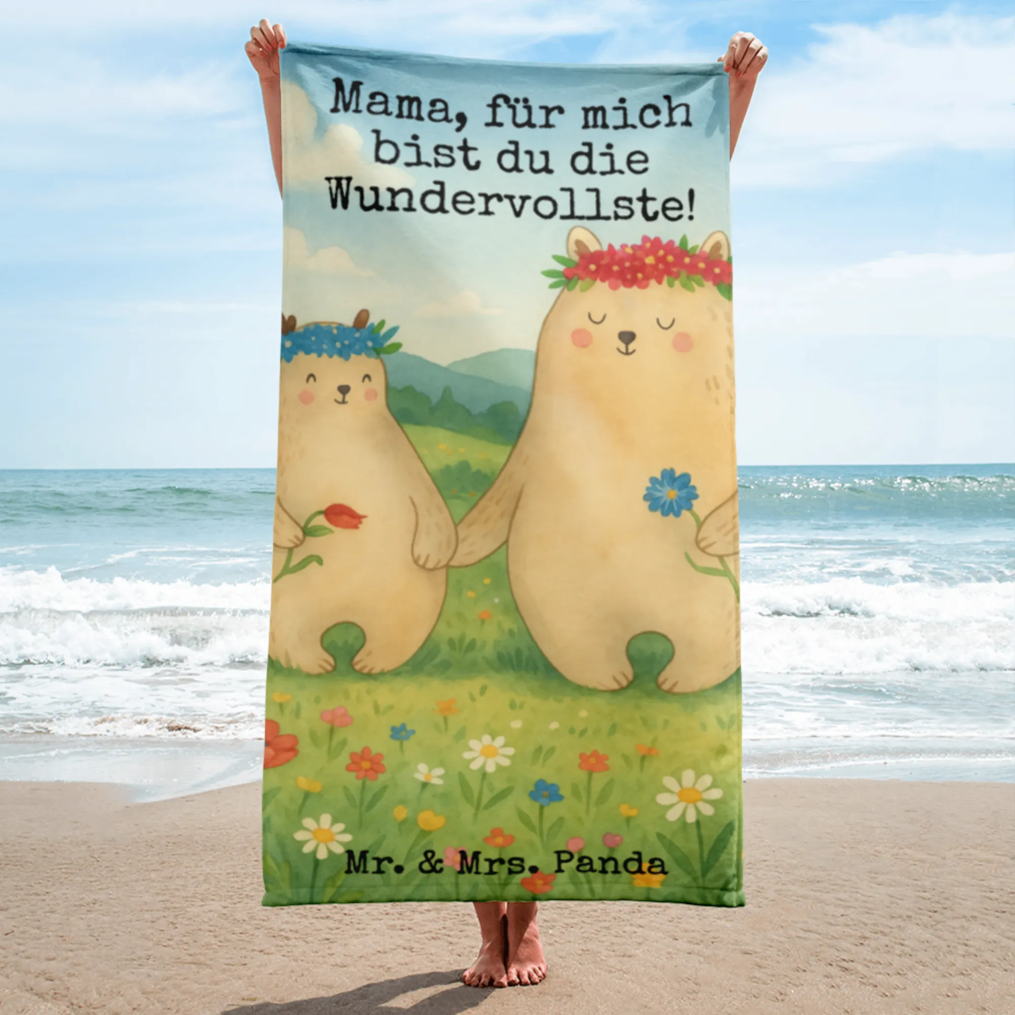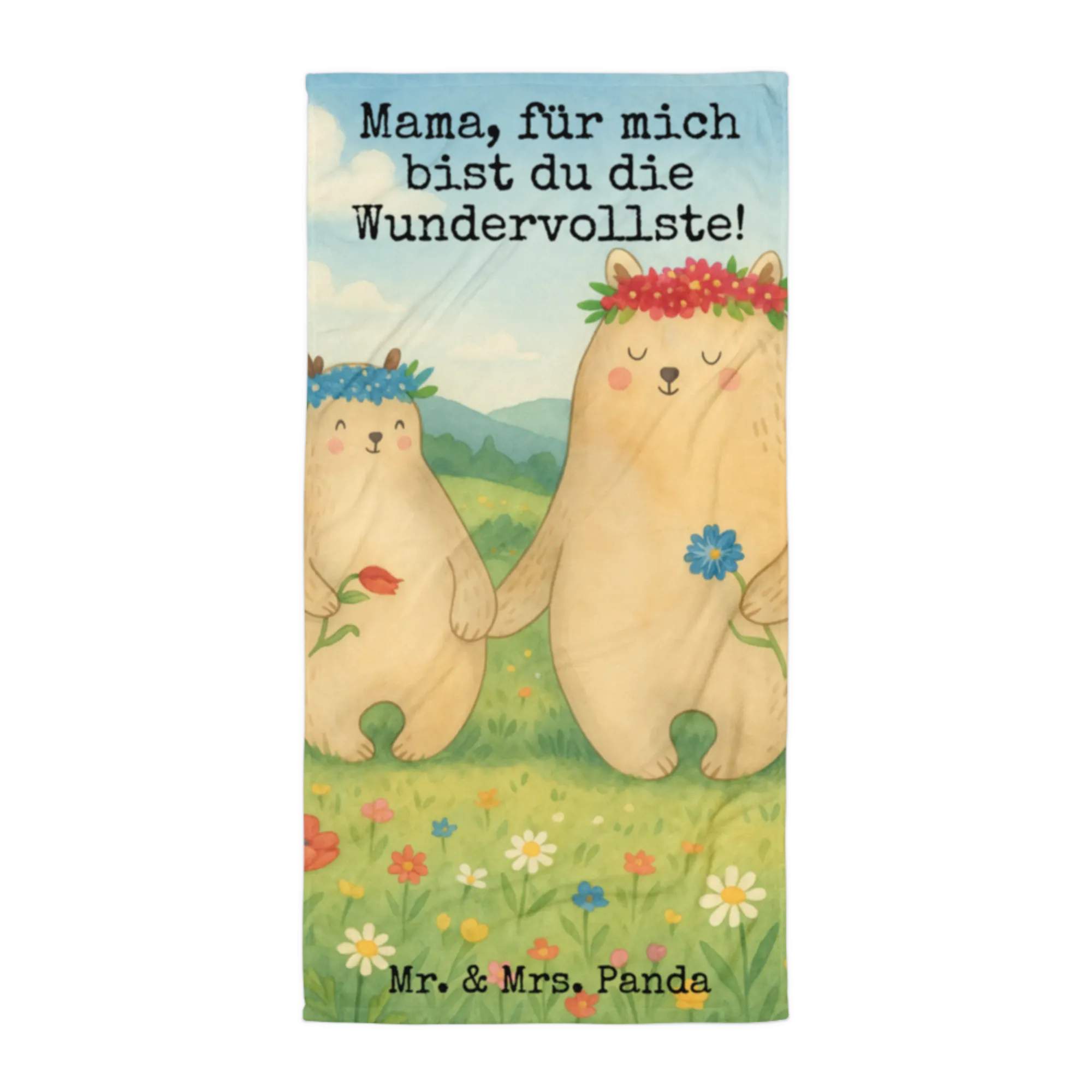 XL bath towel Bears with flower crown Design - with a saying