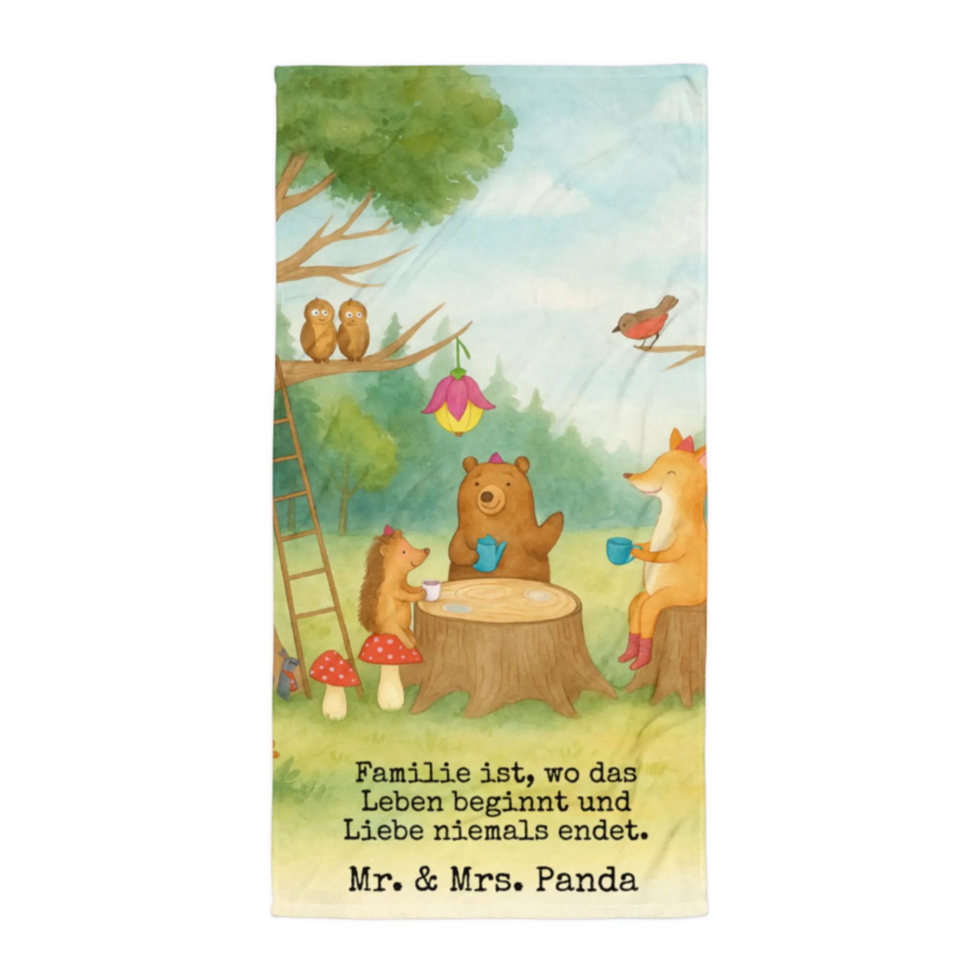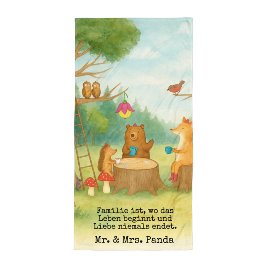 XL bath towel forest animals picnic Design - with a saying