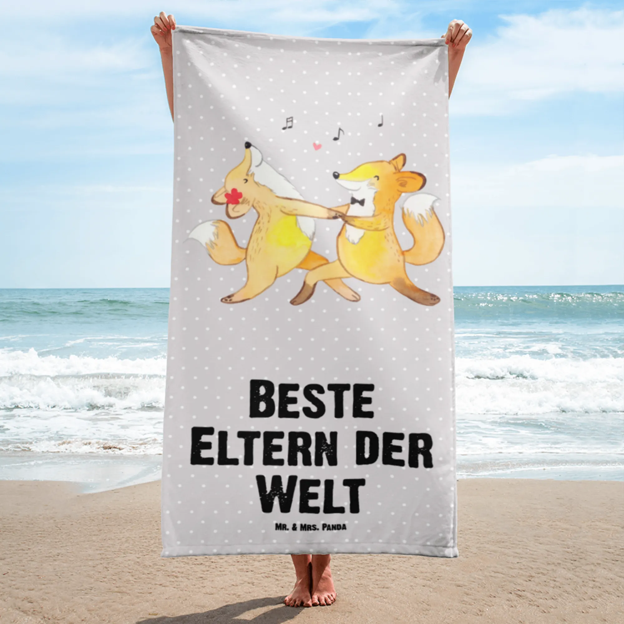 Das XL Badehandtuch "Fuchs Beste Eltern der Welt" von Mr. & Mrs. Panda ist das perfekte Geschenk für alle Eltern, die ihren kleinen Schätzen zeigen möchten, wie besonders sie sind.