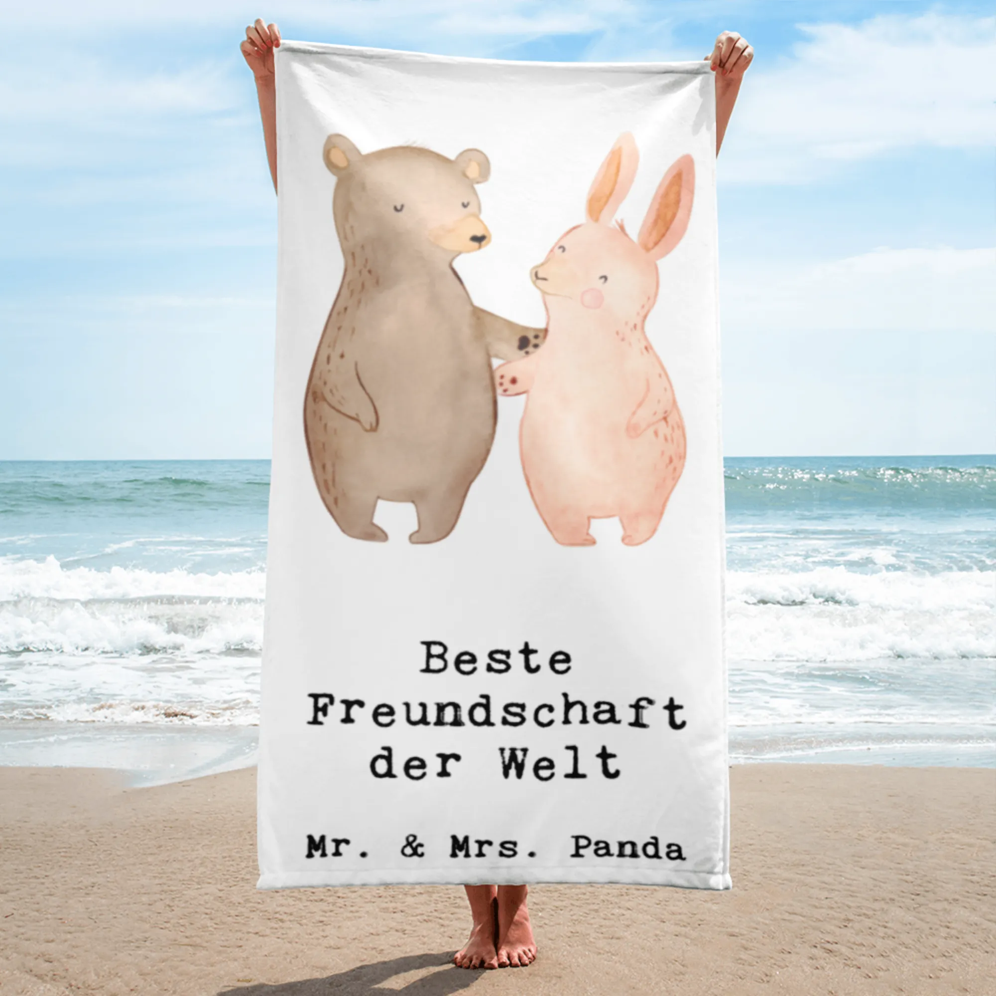 XL bath towel Hare Best Friendship in the World - White