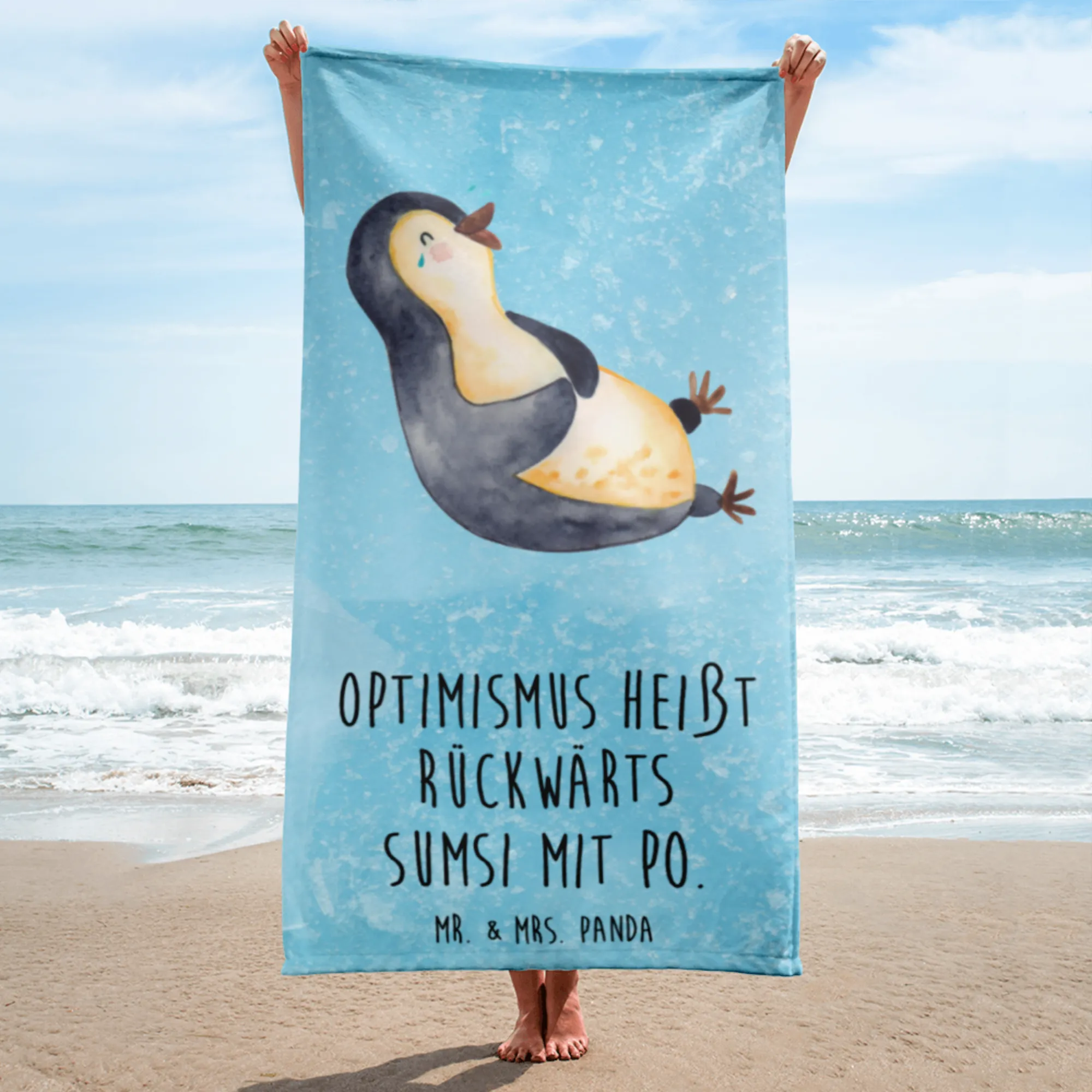 Introducing the perfect companion for sunny beach days, cozy spa visits, or even an indulgent self-care evening at home - the XL Laughing Penguin Bath Towel from Mr. & Mrs. Panda!