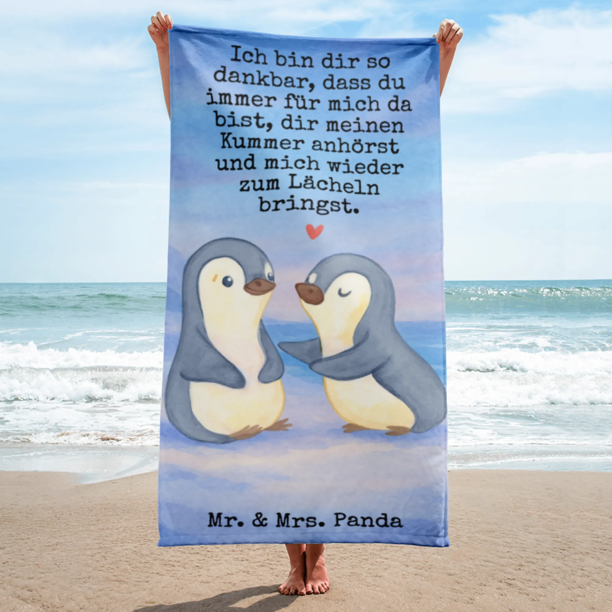 XL bath towel penguins console Design - with a saying