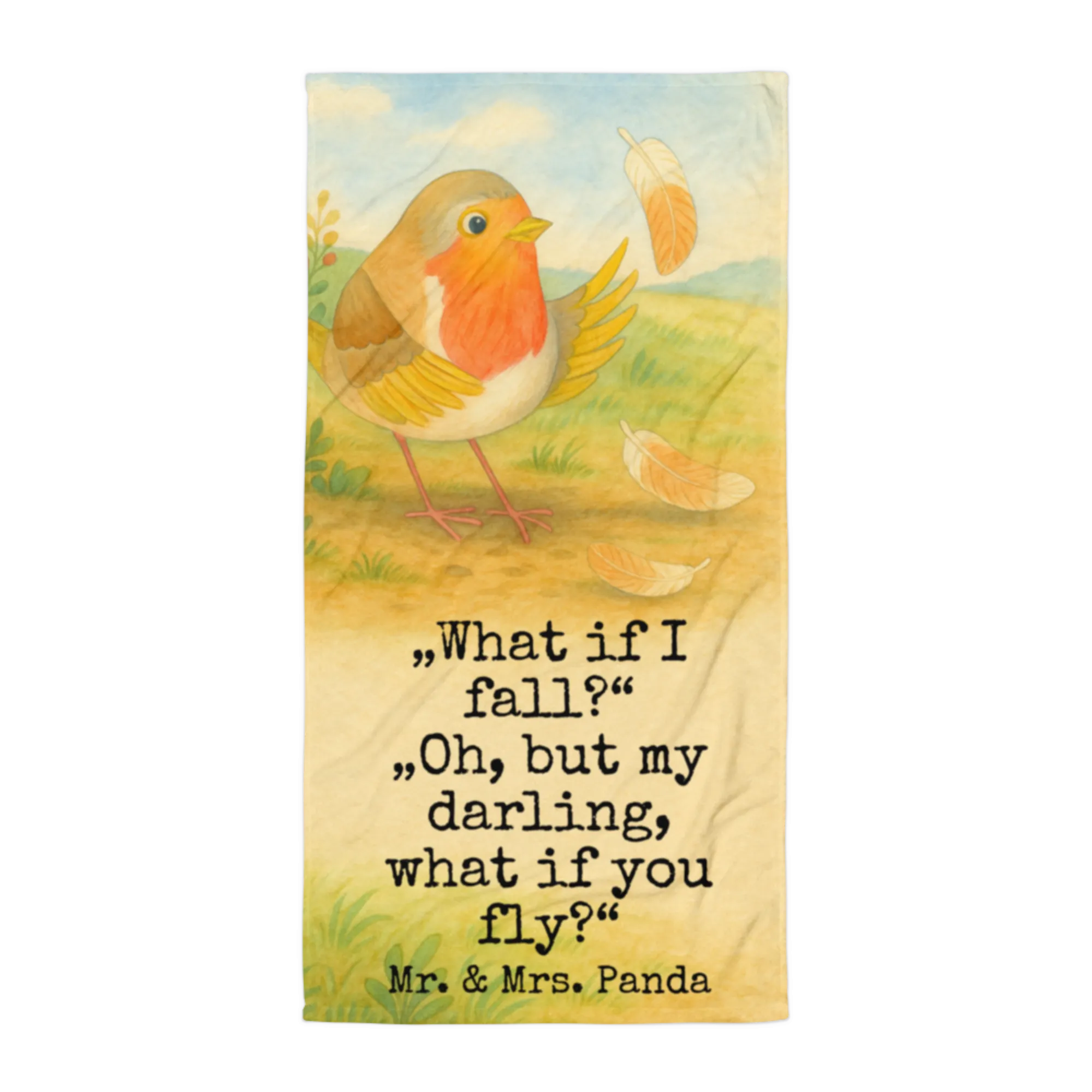 XL bath towel robin feathers Design - with a saying