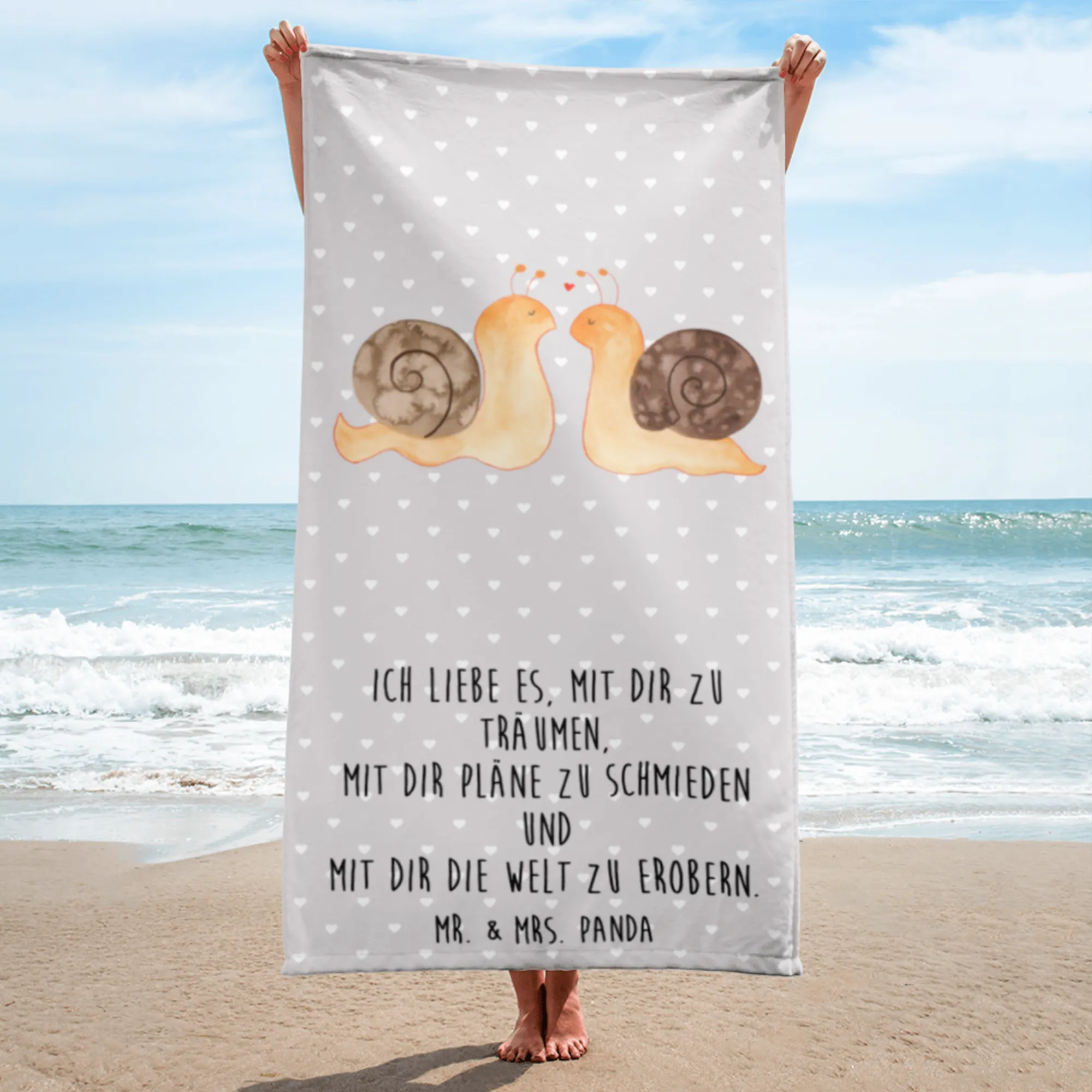Looking for the perfect gift that speaks of love, warmth, and affection? The Mr. & Mrs. Panda XL Bath Towel featuring the adorable "Snails in Love" motif is just what you need!