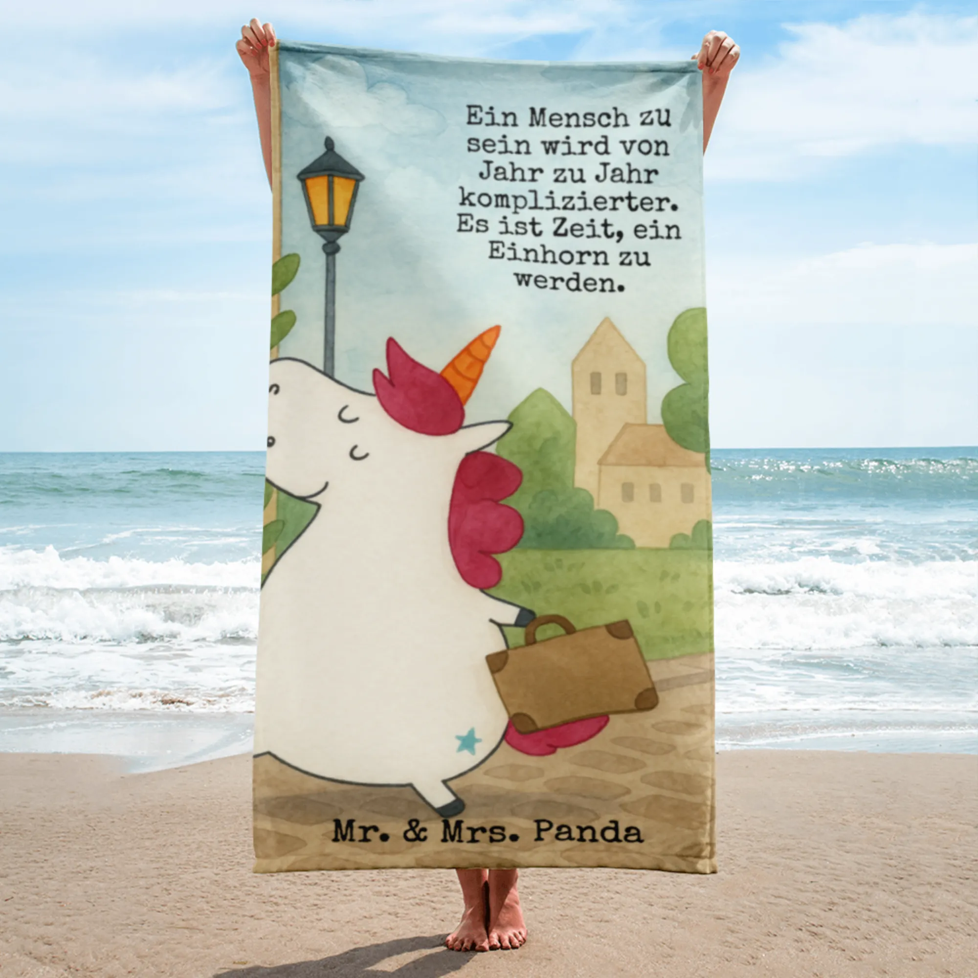 XL bath towel unicorn Suitcase Design - with a saying
