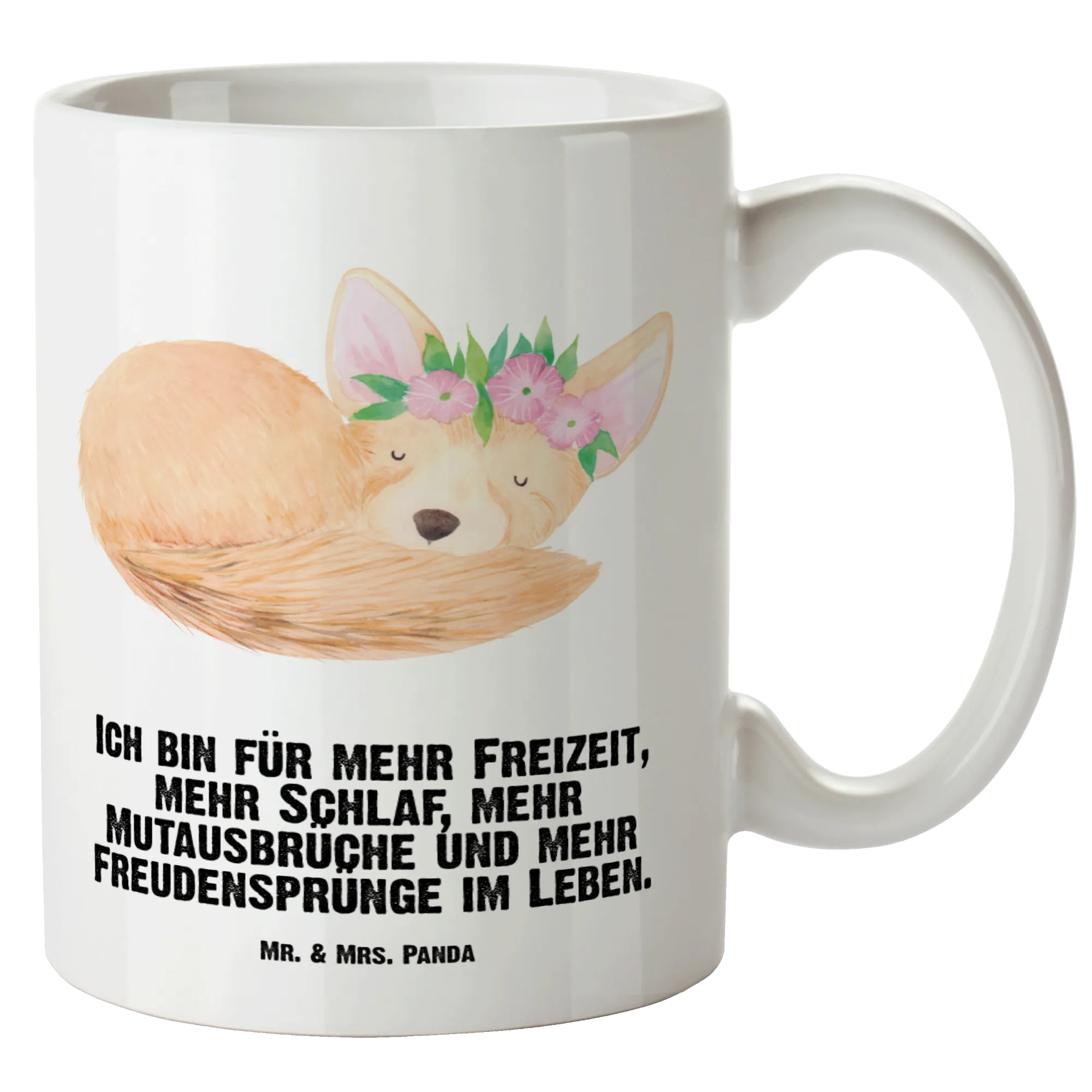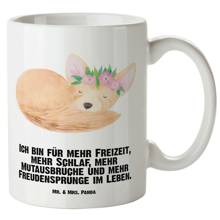 Meet our charming desert fox, a true treasure from the heart of Africa. With its head crowned in a delightful wreath of flowers, this motif beautifully represents a life where relaxation meets vibrance. Our slogan, 'Ich bin für mehr Freizeit, mehr Schlaf, mehr Mutausbrüche und mehr Freudensprünge im Leben,' captures the essence of embracing leisure, adventure, and joy. Imagine this fox basking in the golden sun, nestled among blooming flowers, bringing a sense of peace and happiness. Let this enchanting creature inspire you to carve out moments for yourself, to dream, explore, and make delightful memories! It's a gentle reminder that life is a beautiful tapestry of experiences—each moment worthy of a joyful leap!