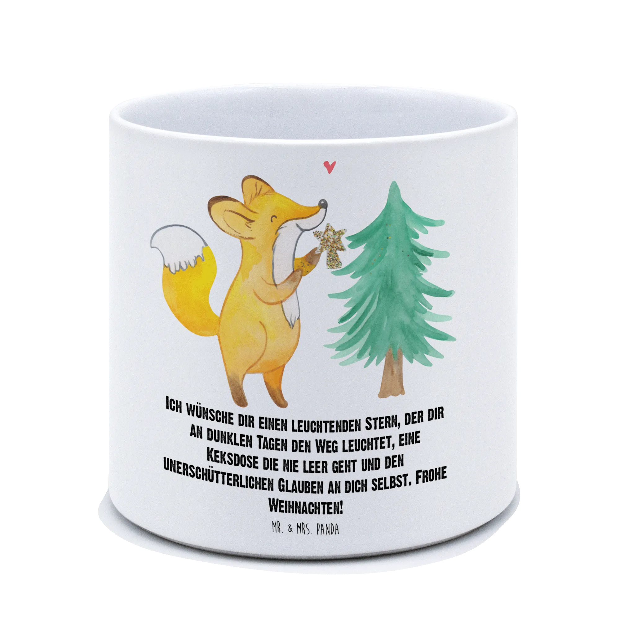 Picture a joyful winter wonderland where a spirited fox is busy decorating a Christmas tree with such enthusiasm. Holding a golden star in its paws, the fox prepares to ensure that this tree shines its brightest on Christmas Eve. Above, a loving heart adds a sweet touch to the vibrant holiday scene, evoking warmth and happiness. This motif invites you to embrace the festive spirit of Christmas days with love and joy. "I wish for you a dazzling star to illuminate your path, a cookie jar that never empties, and the unwavering belief in yourself. Merry Christmas!"