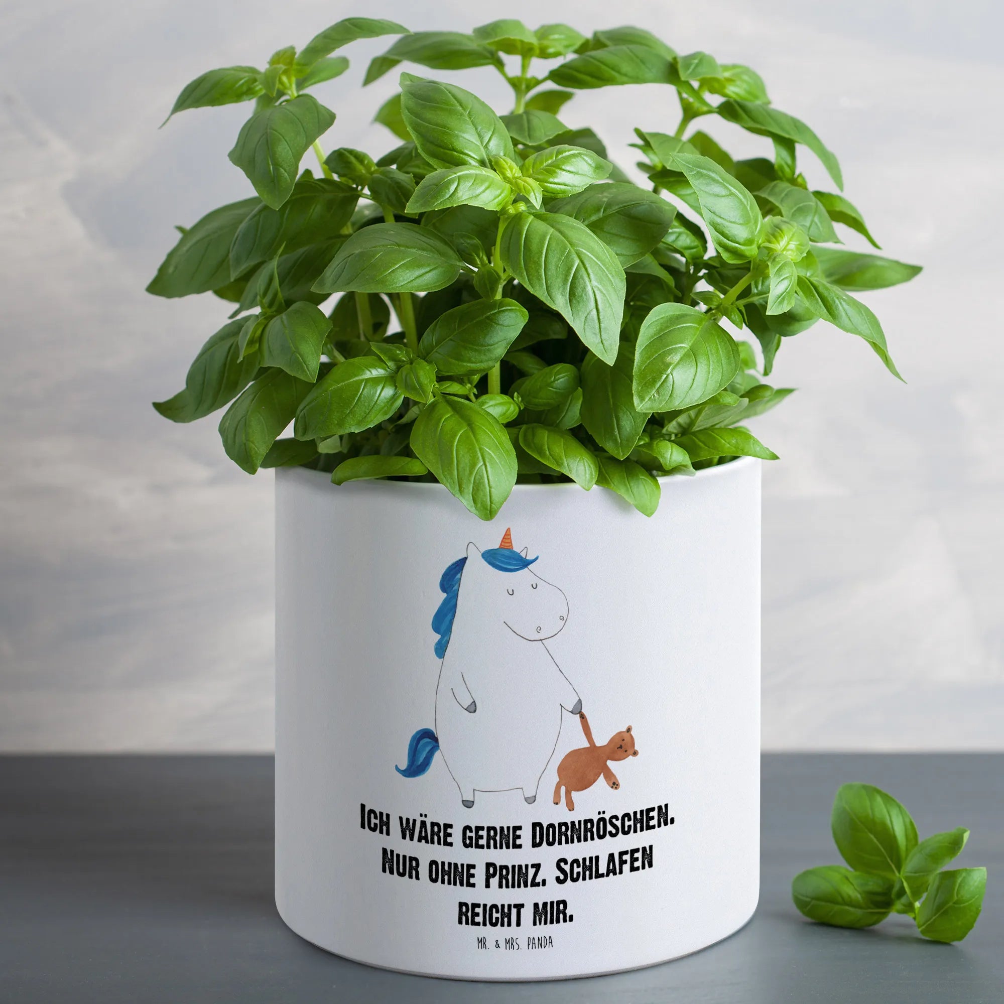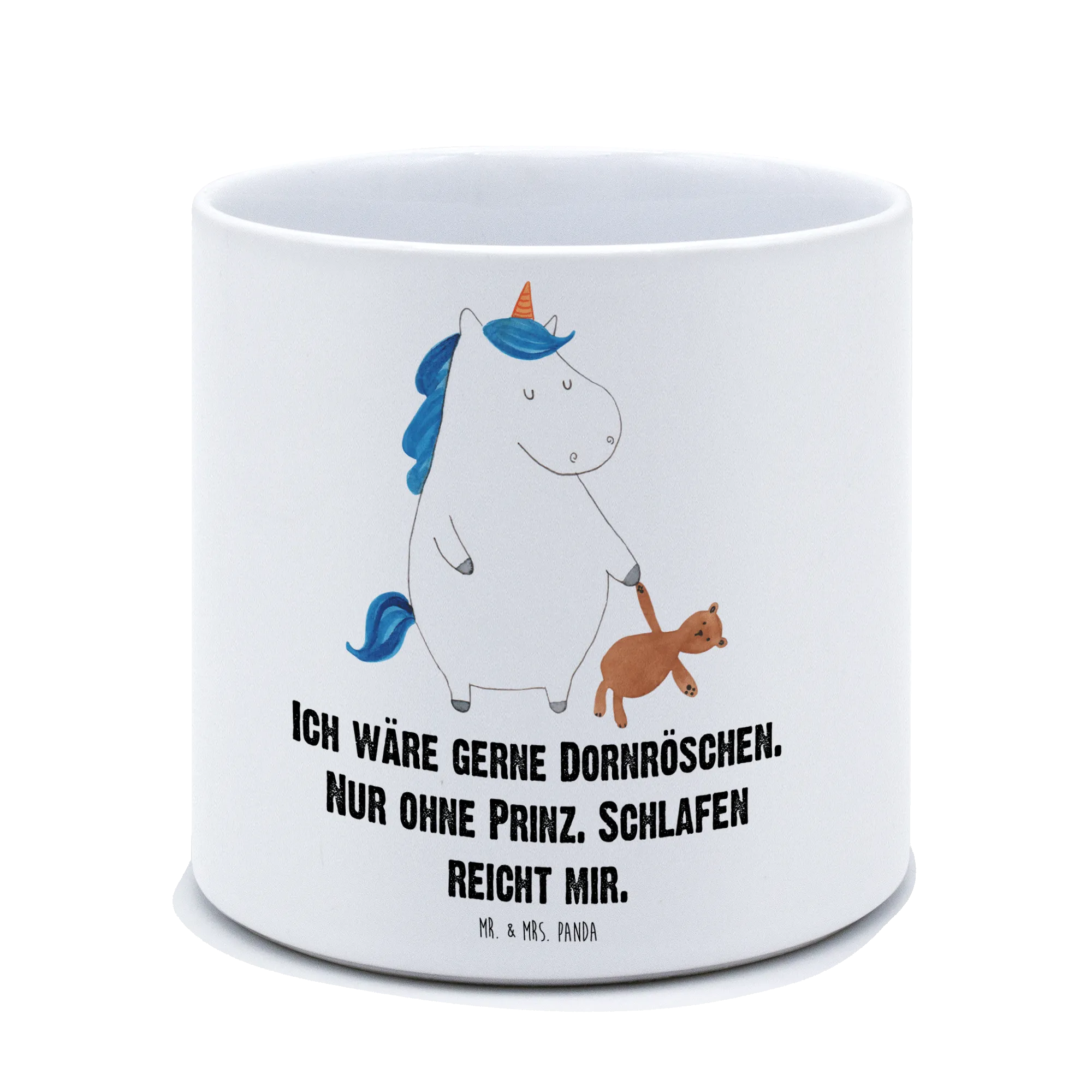 What makes this XL flower pot truly stand out is its delightful design—featuring the adorable Unicorn Teddy motif. This sweet unicorn looks drowsy, holding a teddy bear, exuding cozy vibes that are perfect for children's rooms or nursery décor. The hand-drawn design by Mrs. Panda ensures that every piece is unique and adds a splash of color and cheer wherever it is placed. It's not just a pot; it’s a statement piece!