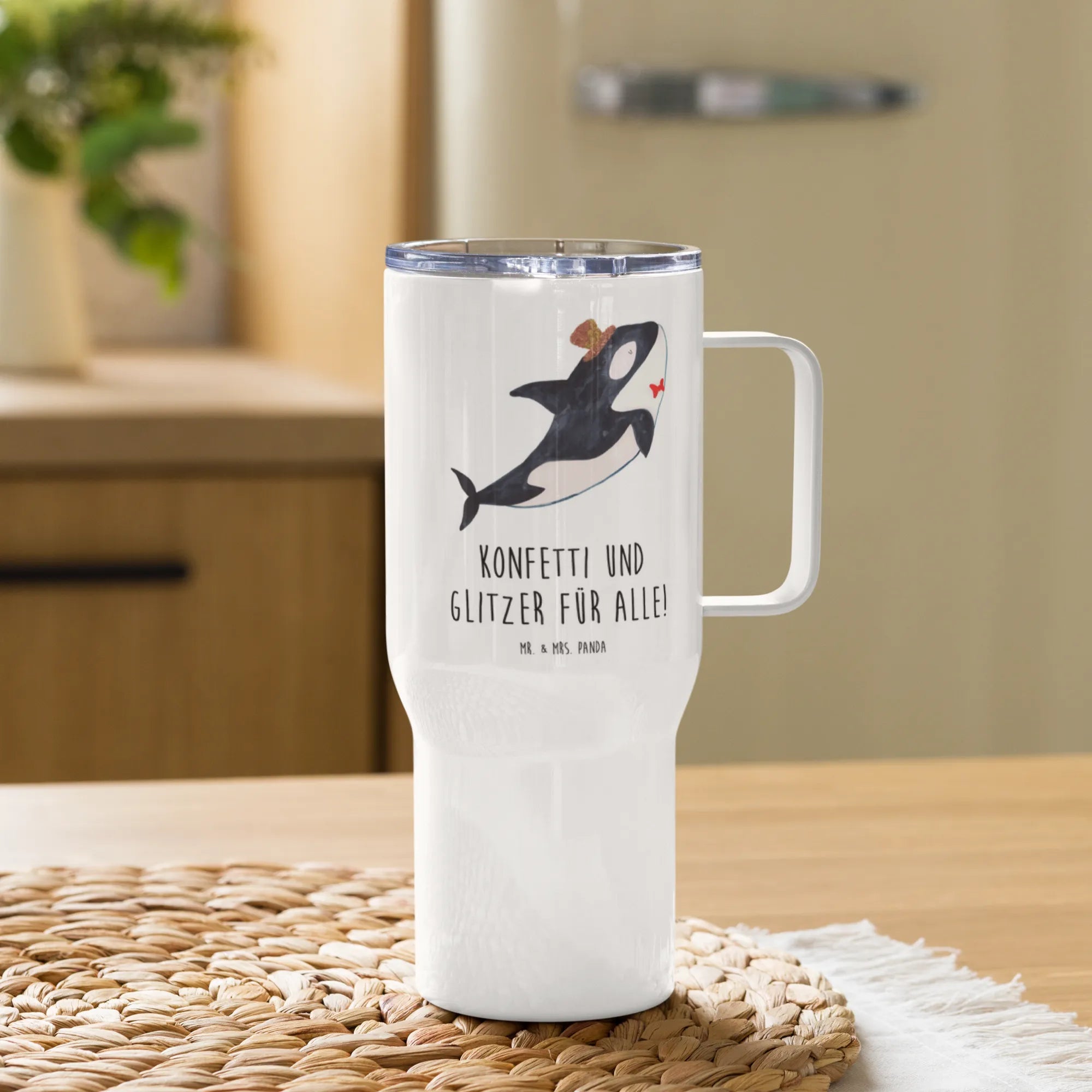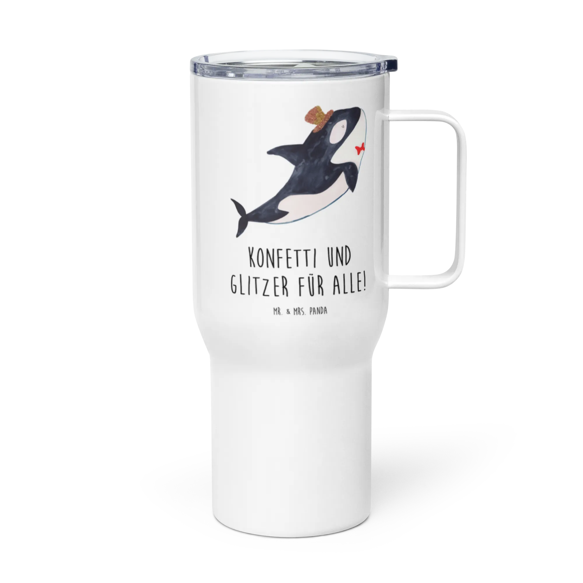 XXL thermal mug orca cylinder Thermobecher, XL Thermobecher, Reisebecher, XL Reisetasse, Großer Thermobecher, Autobecher, Jumbo Becher, Meerestiere, Meer, Urlaub, Narwal, Glitter, Konfetti, Glitzer, Geburtstag, Feier, Fete, Fest, Glückwunsch, Orca