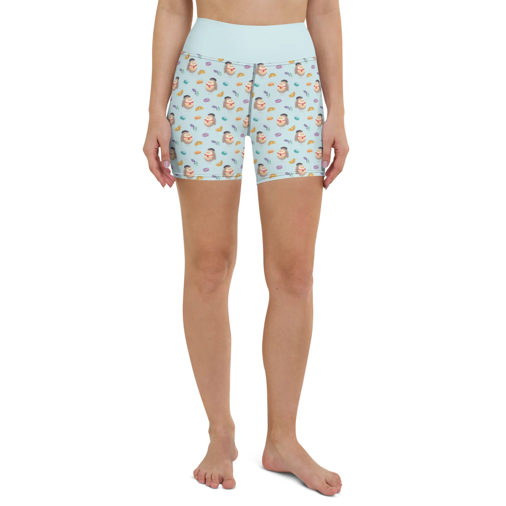 A touch of elegance with every movement: Women's Yoga Shorts by Mr. & Mrs. Panda A perfect yoga day begins with the right clothing! The gorgeous yoga shorts from Mr. & Mrs. Panda, printed with enchanting patterns, are not only an eye-catcher but also your ideal companion for yoga and more. Patterns that captivate: Dive into the beautiful design world of Mr. & Mrs. Panda. Each pattern is a small work of art that uniquely highlights your movements. Perfect fit for every woman: Choose your size from XS to XL and feel how the shorts fit your body like a second skin. Versatile & comfortable: These shorts are not only ideal for yoga but also perfect for evening runs or relaxed moments at home. The four-way stretch material guarantees freedom of movement in every direction, while the high waistband with a soft inner elastic band ensures additional comfort. Practical extras: An optional inner pocket sewn into the waistband offers space for small essentials. And the best part? The stylish Mr. & Mrs. Panda logo subtly adorns the inner waistband. Premium quality: Made of 82% polyester and 18% elastane with a fabric weight of 230 g/m², these shorts promise durability and comfort. The sun protection factor of UPF 50+ provides additional protection. Elegant details like the triangular gusset in the crotch and the flat seam with coverstitch complete the design. Indulge yourself with a piece of luxury for your yoga sessions with the yoga shorts from Mr. & Mrs. Panda. For more joy, movement, and elegance in every asana.