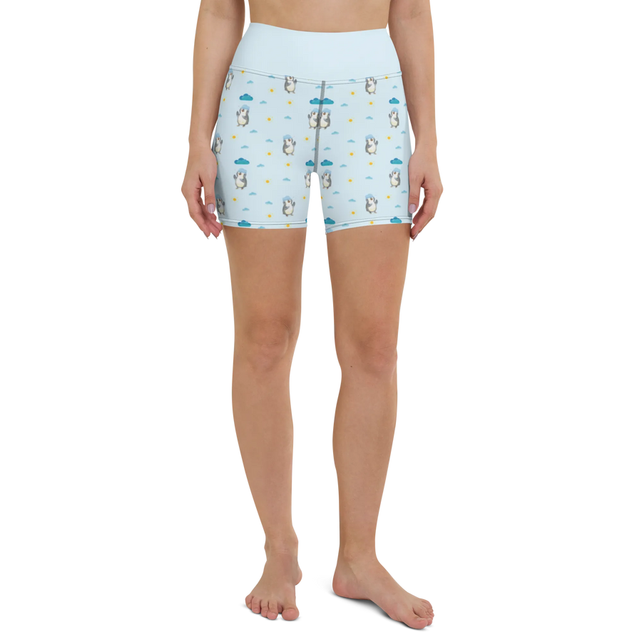 Step into comfort and style with the Yoga Shorts from Mr. & Mrs. Panda! These stylish shorts, crafted from 82% polyester and 18% elastane, are designed to fit beautifully while providing you the freedom to move. The high waist ensures they stay in place, while the adorable prints motivate you to enhance your workout routine. They're made with a super soft four-way stretch material that maintains its shape wear after wear, offering a snug and cozy fit. Perfect for yoga, jogging, or any other exercise, these shorts help you stay dry and comfortable thanks to their moisture-absorbing capabilities. Remember to wash at a maximum of 30 degrees Celsius, while avoiding rough surfaces to keep these shorts looking radiant!