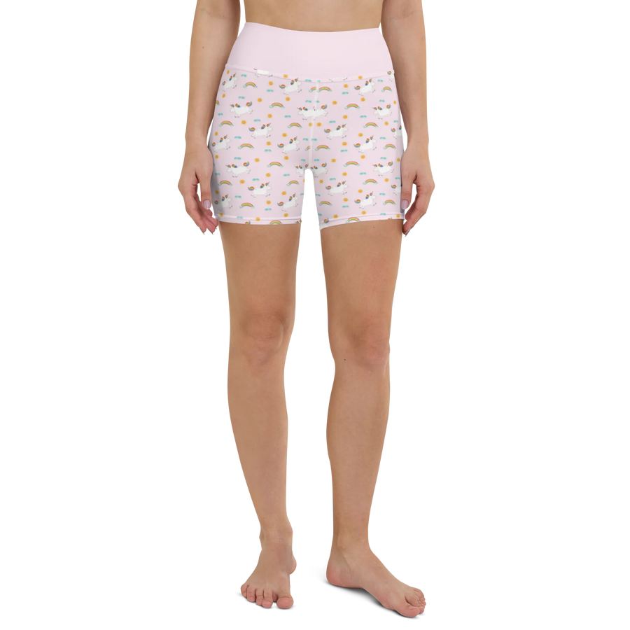 Experience the playful spirit of exercise with our vibrant Yoga Shorts by Mr. & Mrs. Panda! Tailored for maximum comfort, these shorts feature a flattering high waist and a fabulous four-way stretch material consisting of 82% polyester and 18% elastane. Move with ease and style, whether you’re stretching on the mat or running errands around town. They come in multiple sizes to fit your body perfectly. Thanks to the moisture-wicking properties, you’ll stay cool and comfortable during your workout sessions. Adorned with cute and distinctive designs, these shorts add a splash of personality to any exercise routine. Caring for them is simple; just throw them into the washing machine at 30°C with gentle detergents. Keep them away from rough surfaces to keep their vibrant look intact. It's time to unleash your fun side and elevate your workout wardrobe with these stylish shorts from Mr. & Mrs. Panda!