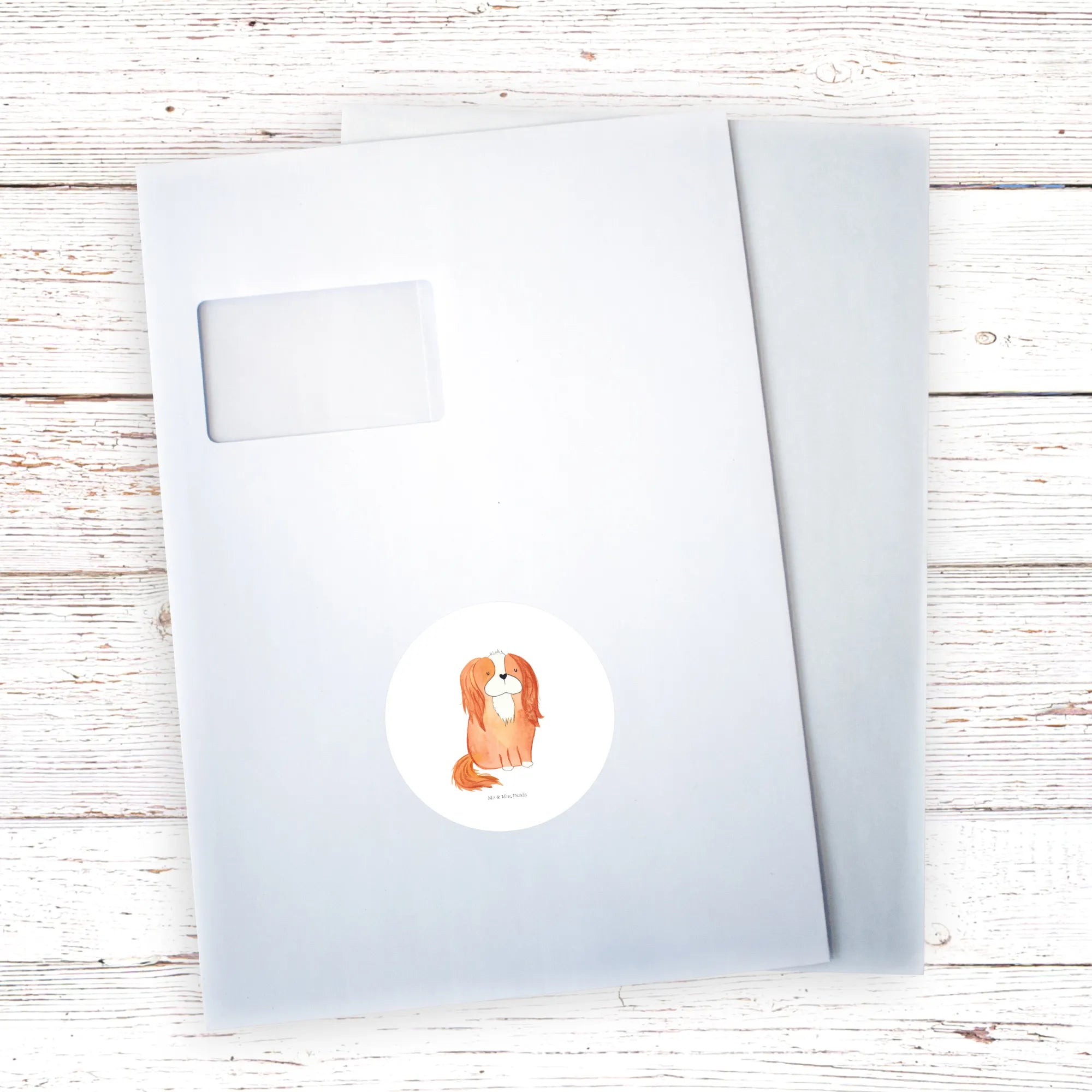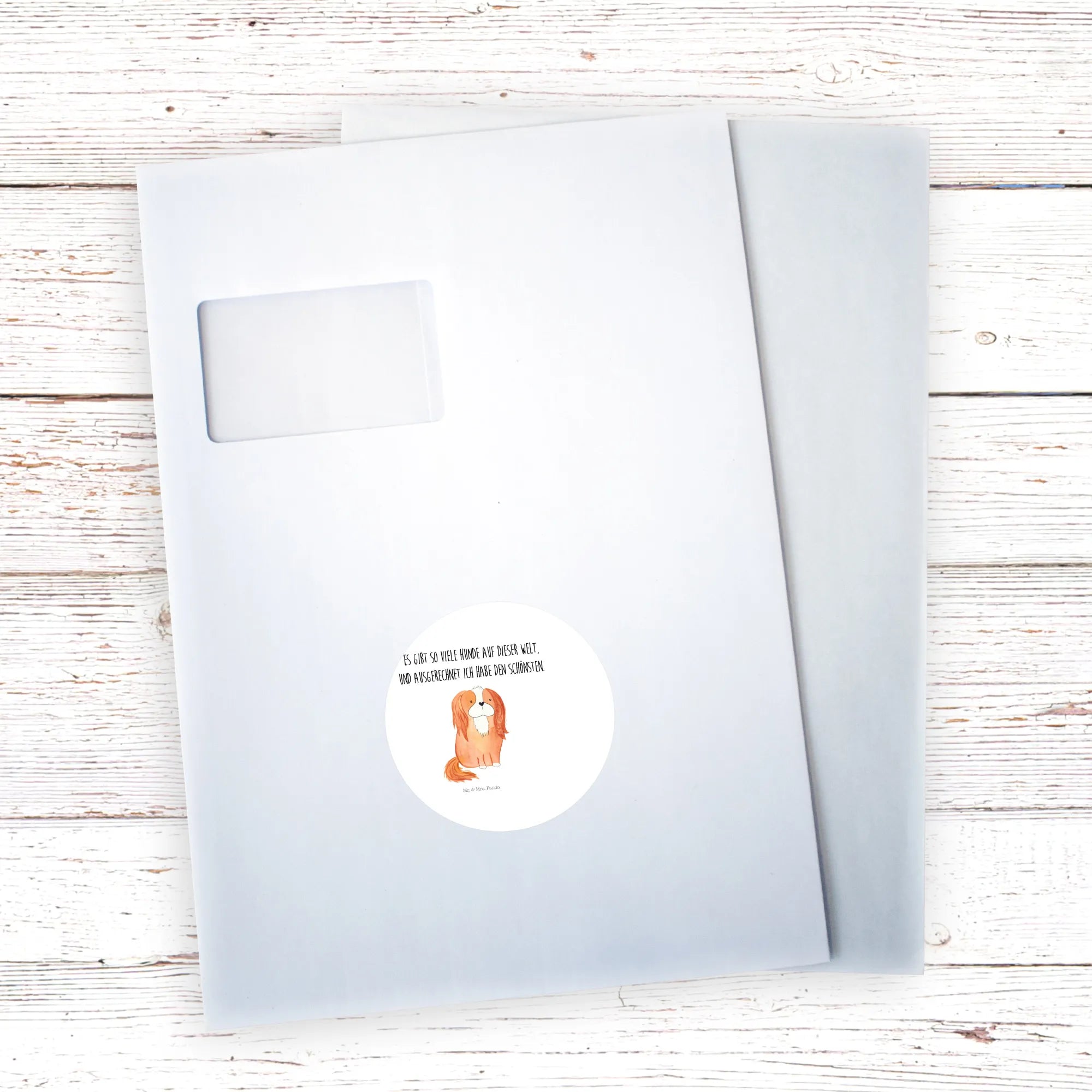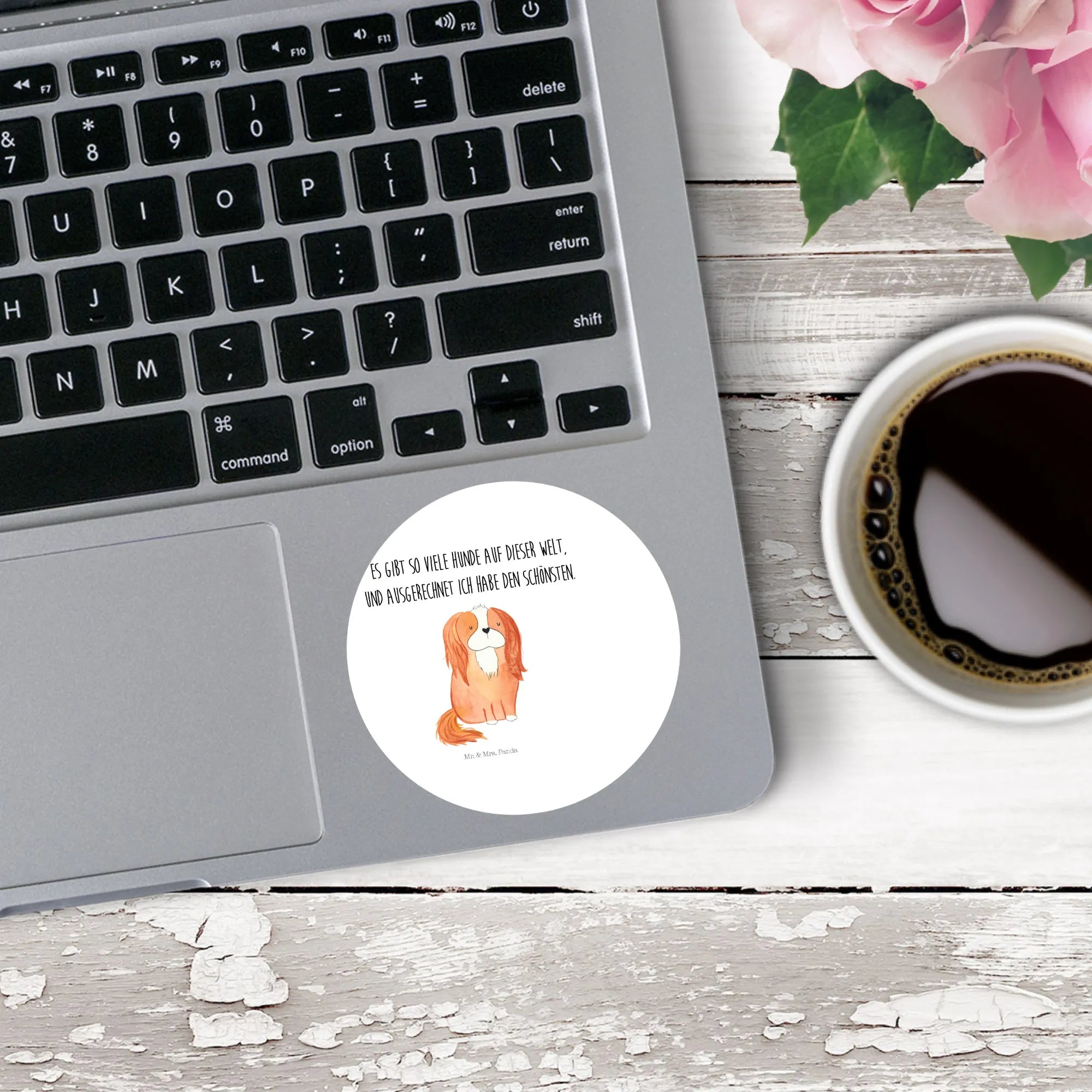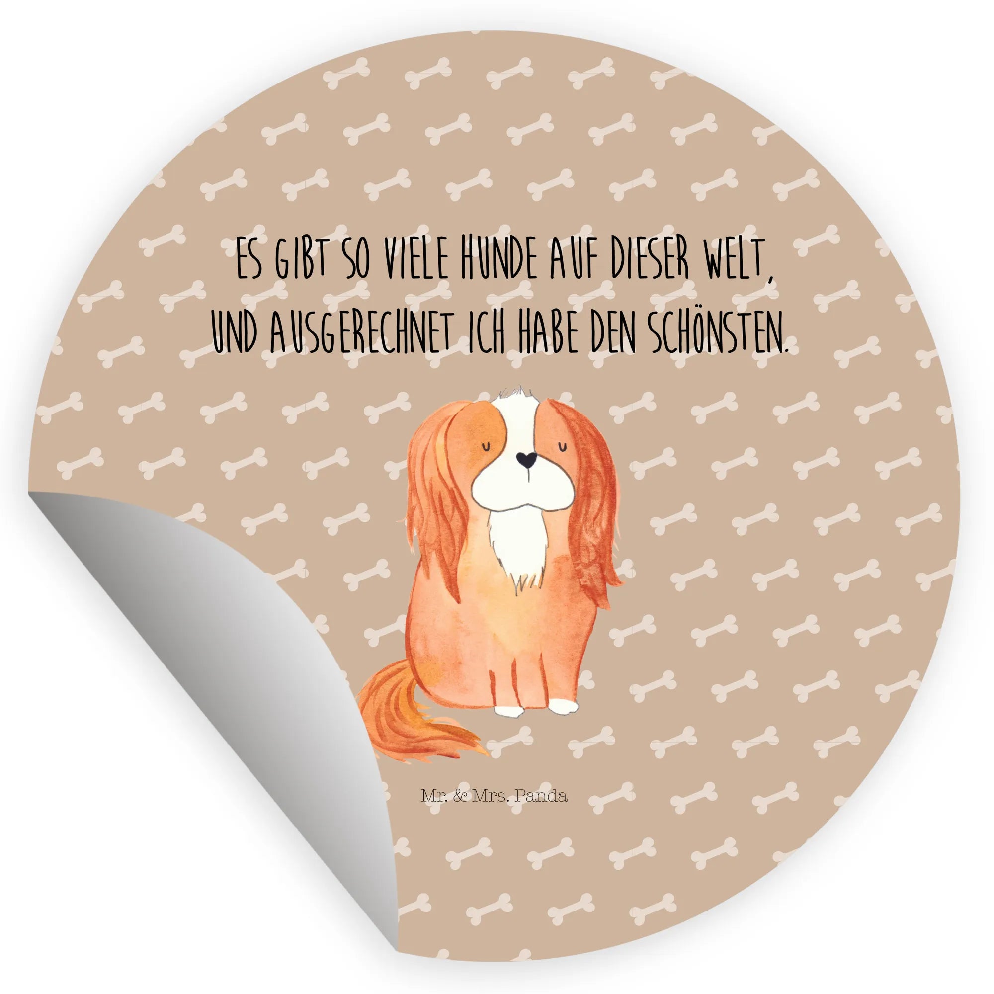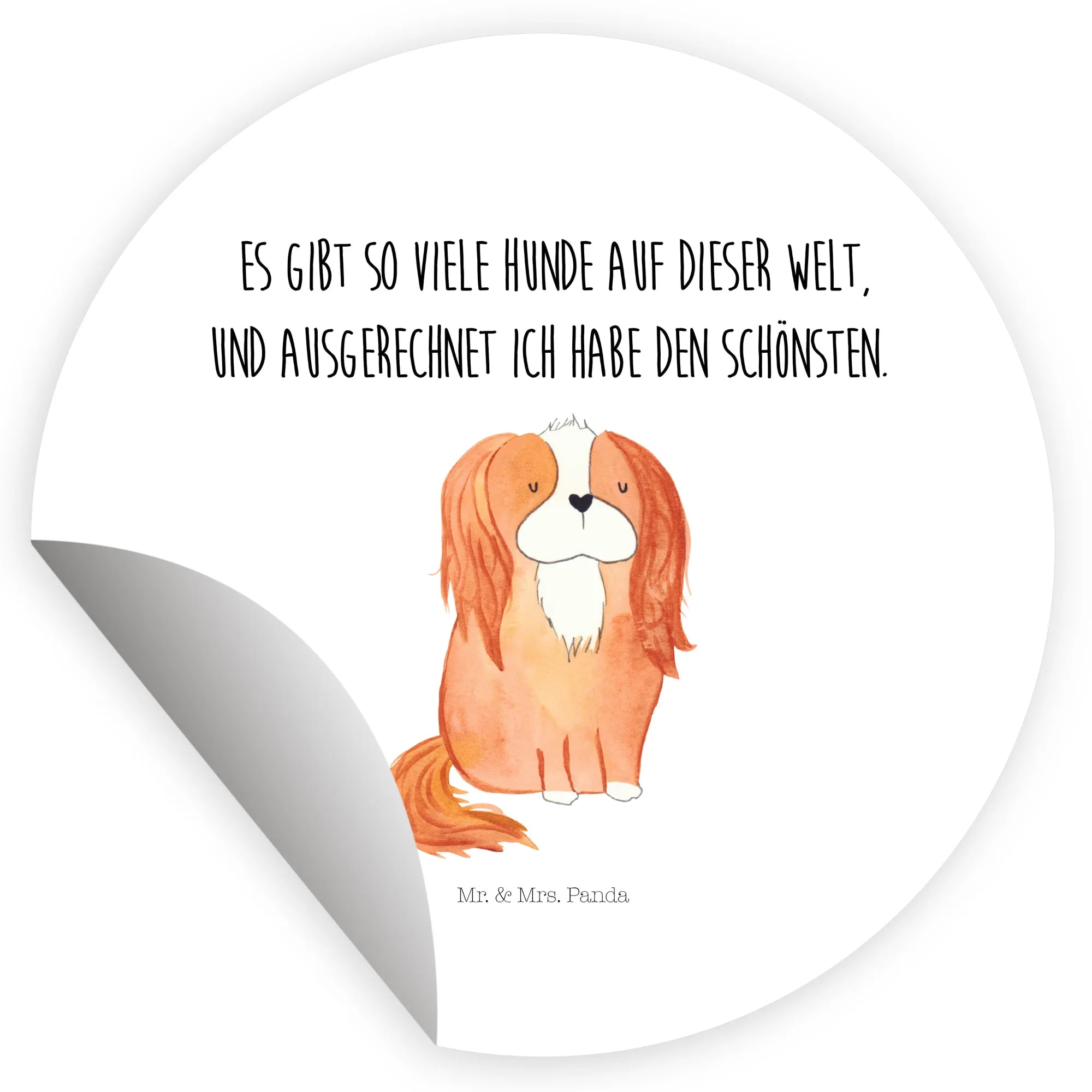 80mm round sticker Dog Cavalier King Charles Spaniel - 80mm Rund Aufkleber - with saying - White