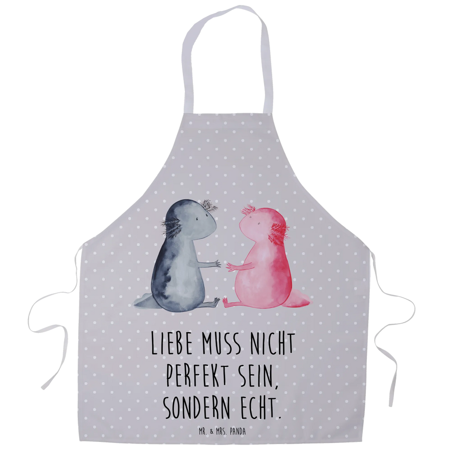 Looking for the perfect gift for someone special who loves cooking and adorable creatures? The Axolotl in Love Apron from Mr. & Mrs. Panda is the ideal choice! This beautifully designed apron features two charming axolotls holding hands, a true testament to love and friendship.