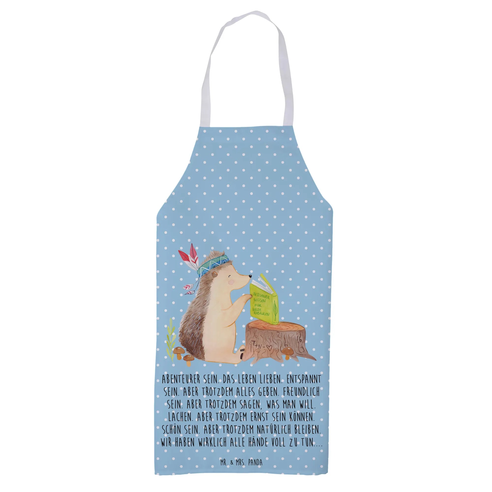 The Hedgehog Indians design showcases a sweet hedgehog adorned with feathers, happily perched on a tree stump, engaged in reading an adventure book. This playful scene serves as a reminder that cooking can be as thrilling as an outdoor adventure! Whether you’re whipping up your famous recipes, baking treats, or grilling delicious meals during a summer barbecue, this apron will keep you stylish and clean.