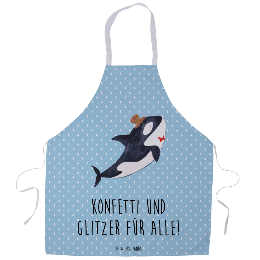 Whether you are hosting a birthday bash, a celebratory feast, or simply whipping up a delicious meal for friends and family, this apron will keep you clean and stylish at the same time. The enchanting design features a friendly orca in a playful pose, donning a stylish top hat adorned with beautiful flowers, paired with a whimsical, cheerful vibe. The thoughtful inclusion of a little red fish swimming near the orca adds a pinch of charm, making the cooking experience all the more enjoyable.