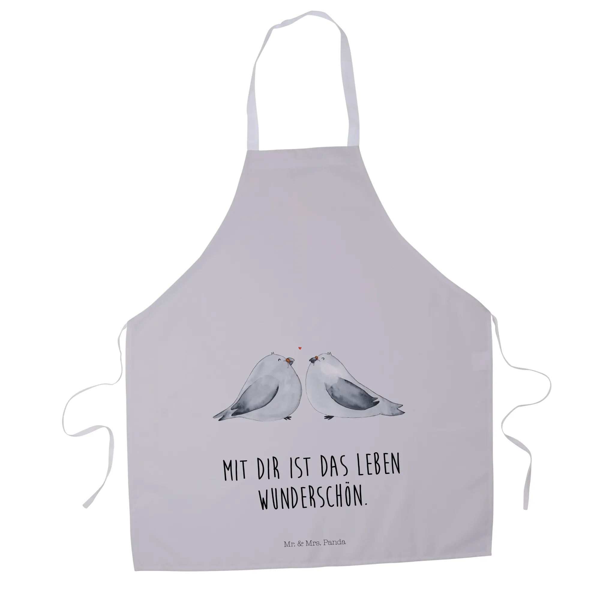 Apron Turtledoves in love - with a saying - Pastel Gray