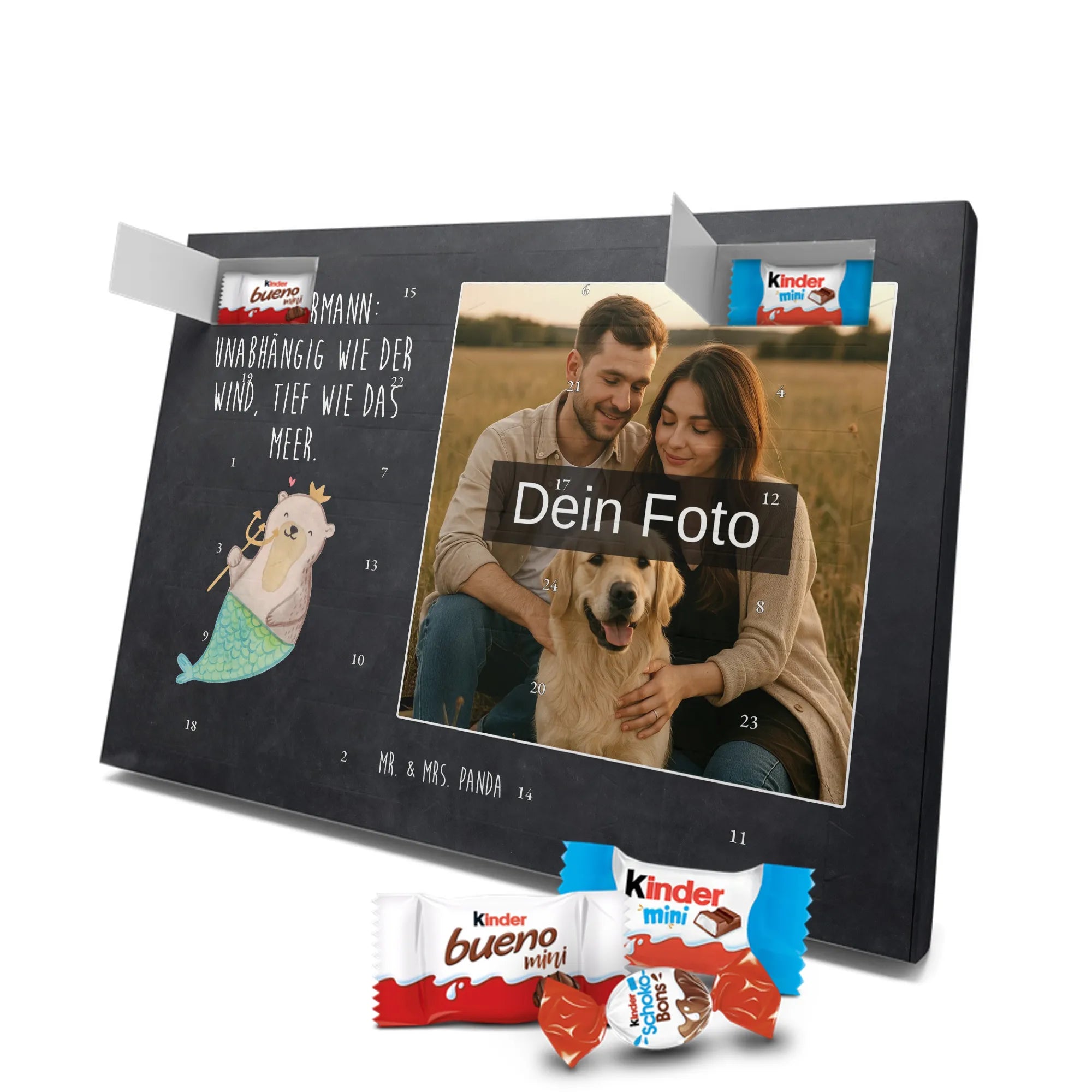 Personalisierter Schoko Foto Adventskalender von Mr. & Mrs. Panda – ein liebevoll gestaltetes Geschenk, das Vorfreude und Genuss vereint. In diesem personalisierten Schoko Foto Adventskalender kannst du dein Lieblingsfoto einsetzen und so jeden Tag im Dezember mit einem kleinen Lächeln öffnen. Der Kalender ist bedruckt mit unseren typischen Mr. & Mrs. Panda Motiven und süßen Sprüchen, die perfekt zu deinem Foto passen. Achte bitte bei der Bildauswahl auf hohe Auflösung, damit der Druck klar und brillant wird. Wähle einen passenden Bildausschnitt, damit keine wichtigen Details abgeschnitten werden. Lade nur Bilder hoch, bei denen du die Bildrechte besitzt oder die Zustimmung der abgebildeten Personen vorliegt. Die Fotos werden weder nachbearbeitet noch zugeschnitten; Rücknahme bei personalisierten Foto-Artikeln ist ausgeschlossen. Die Druckqualität ist brillant mit einer seidenmatten Oberflächenveredelung und bedruckten Seitenflächen für ein rundum schönes Erscheinungsbild. Maße: 355 mm x 245 mm x 11 mm. Praktisch: Du kannst den Adventskalender entweder aufstellen oder an die Wand hängen. Gefüllt ist der Kalender mit kinder® Schokolade – genauer: kinder® Schoko-Bons, kinder® Bueno mini und kinder® Schokolade mini. Bitte beachte: Um das beste Druckergebnis zu erzielen, lade ein hochwertiges Foto hoch und kontrolliere vor dem Bestellen den Bildausschnitt. Dieser Adventskalender ist das perfekte, persönliche Geschenk für Familie, Freunde oder für dich selbst – voller Liebe, süßer Überraschungen und dem unverwechselbaren Mr. & Mrs. Panda Charme.