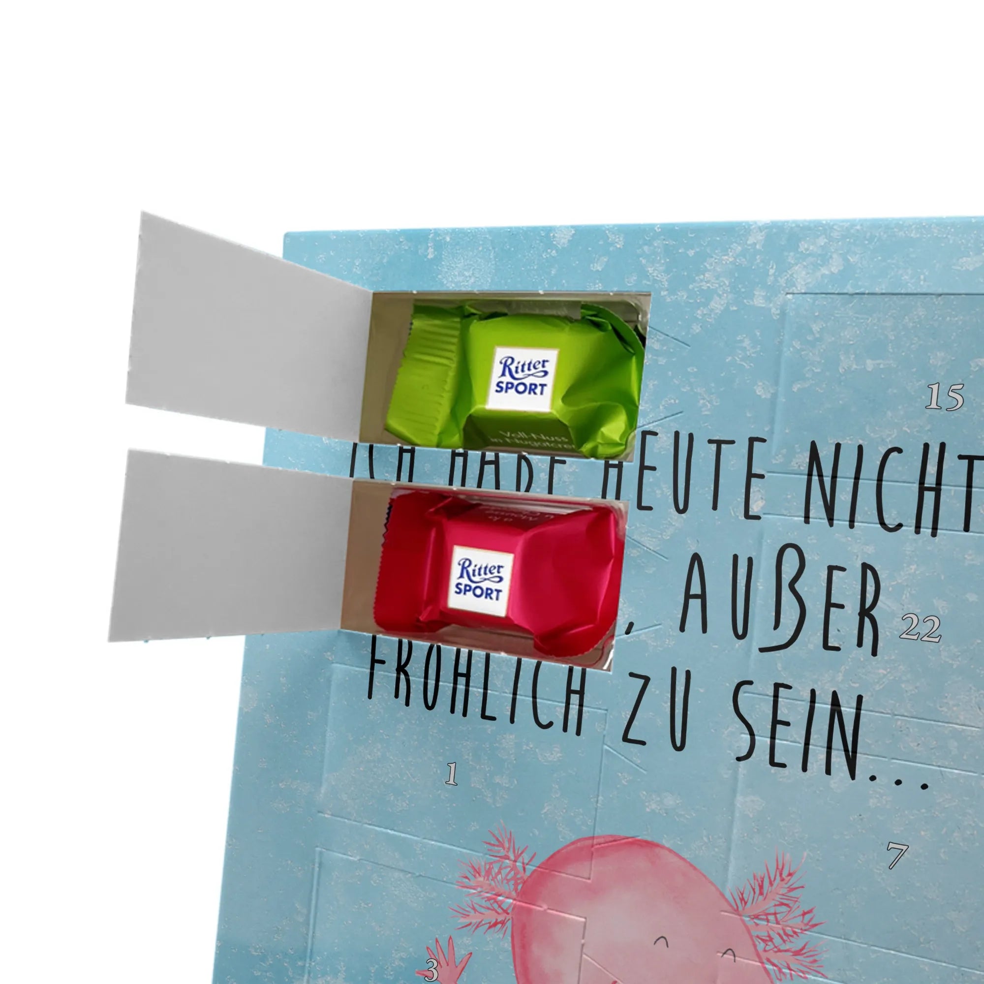 Schoko Foto Adventskalender personalisiert – ein fröhlicher Hingucker von Mr. & Mrs. Panda, der Adventszeit und Erinnerungen verbindet. Der Kalender ist bedruckt mit zauberhaften Motiven & Sprüchen von Mr. & Mrs. Panda und lässt sich ganz leicht mit einem Foto deiner Wahl personalisieren. Achtung Bildqualität: Für ein scharfes Druckbild solltest du ein Foto in hoher Auflösung verwenden. Kontrolliere den Bildausschnitt, damit wichtige Gesichter oder Details nicht verloren gehen. Verwende nur Fotos, für die du die Rechte besitzt oder die frei nutzbar sind. Bitte beachte: Die Fotos werden weder nachbearbeitet noch zugeschnitten und personalisierte Foto Artikel sind vom Umtausch ausgeschlossen. Die Verarbeitung überzeugt mit seidenmatter Oberflächenveredelung und bedruckten Seitenflächen für ein edles Finish. Maße: 325 mm x 225 mm x 27 mm. Besonderheit: Du kannst den Kalender aufhängen oder aufstellen – ganz flexibel. Gefüllt ist der Kalender mit Ritter Sport Schokowürfeln in leckeren Geschmacksrichtungen wie Mousse au Chocolat, Schoko Crisp, Voll-Nuss in Nougatcreme, Karamell Duo, Joghurt und Erdbeer-Joghurt. Ein liebevolles Geschenk, das jeden Tag im Advent versüßt.