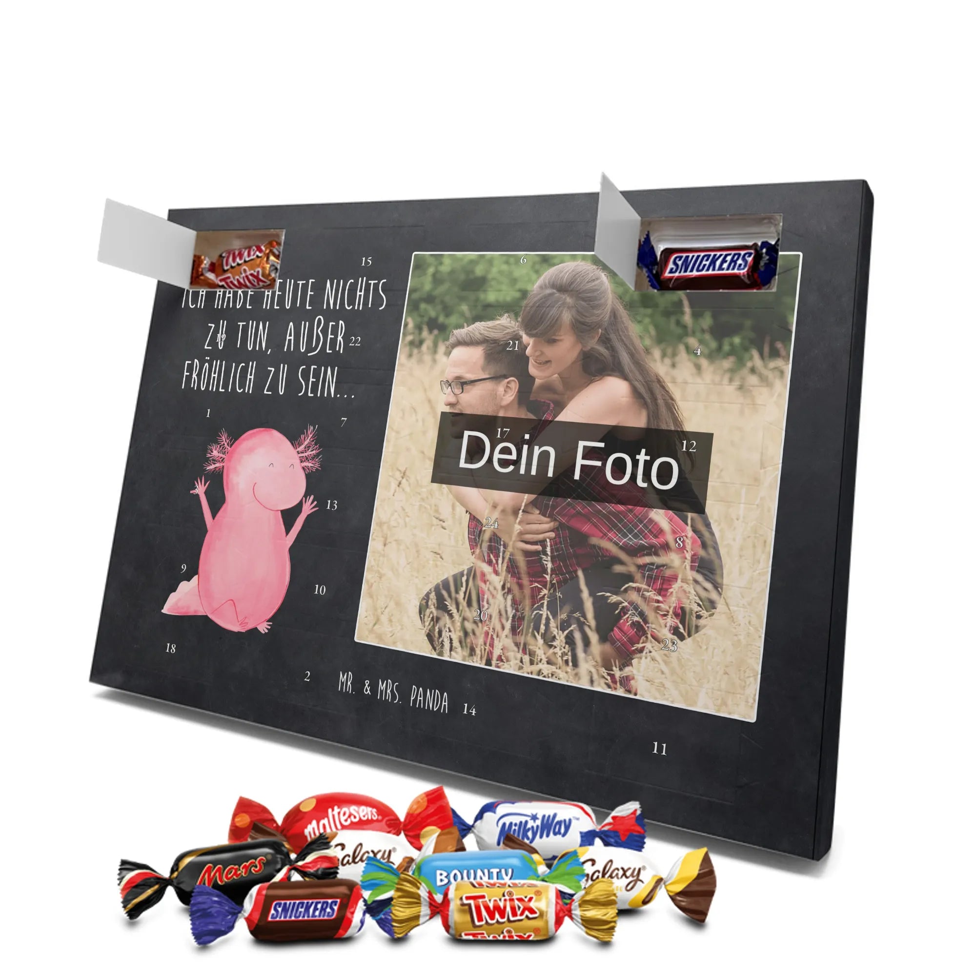 Lustiger Personalisierter Schoko Foto-Adventskalender – das Must-have für eine persönliche Adventszeit von Mr. & Mrs. Panda. Jeder Kalender wird mit unseren charmanten Illustrationen und liebevollen Sprüchen bedruckt, während dein Foto die Vorderseite einzigartig macht. Achte bitte darauf, ein Foto mit guter Qualität und ausreichend hoher Auflösung hochzuladen, damit der Druck gestochen scharf wirkt. Überprüfe den Bildausschnitt, damit wichtige Bereiche nicht verloren gehen. Denk daran, nur Bilder zu verwenden, bei denen du die nötigen Rechte besitzt. Die Verarbeitung ist hochwertig: brillante Druckqualität mit seidenmatter Oberflächenveredelung und bedruckten Seitenflächen. Maße: 325 mm x 225 mm x 27 mm. Du kannst den Kalender aufhängen oder aufstellen – sehr praktisch. Hinweis: Die hochgeladenen Fotos werden nicht nachbearbeitet oder zugeschnitten; Rücknahme bei personalisierten Foto-Artikeln ist ausgeschlossen. Gefüllt ist der Kalender mit Celebrations Schokolade – 24 Stück in 8 verschiedenen Sorten (Maltesers, Mars, Snickers, Twix, Milky Way, Bounty, Galaxy, Galaxy Caramel). Verschenke ein Stück persönlich gestaltete Vorfreude und mache jeden Dezembertag zu etwas Besonderem.