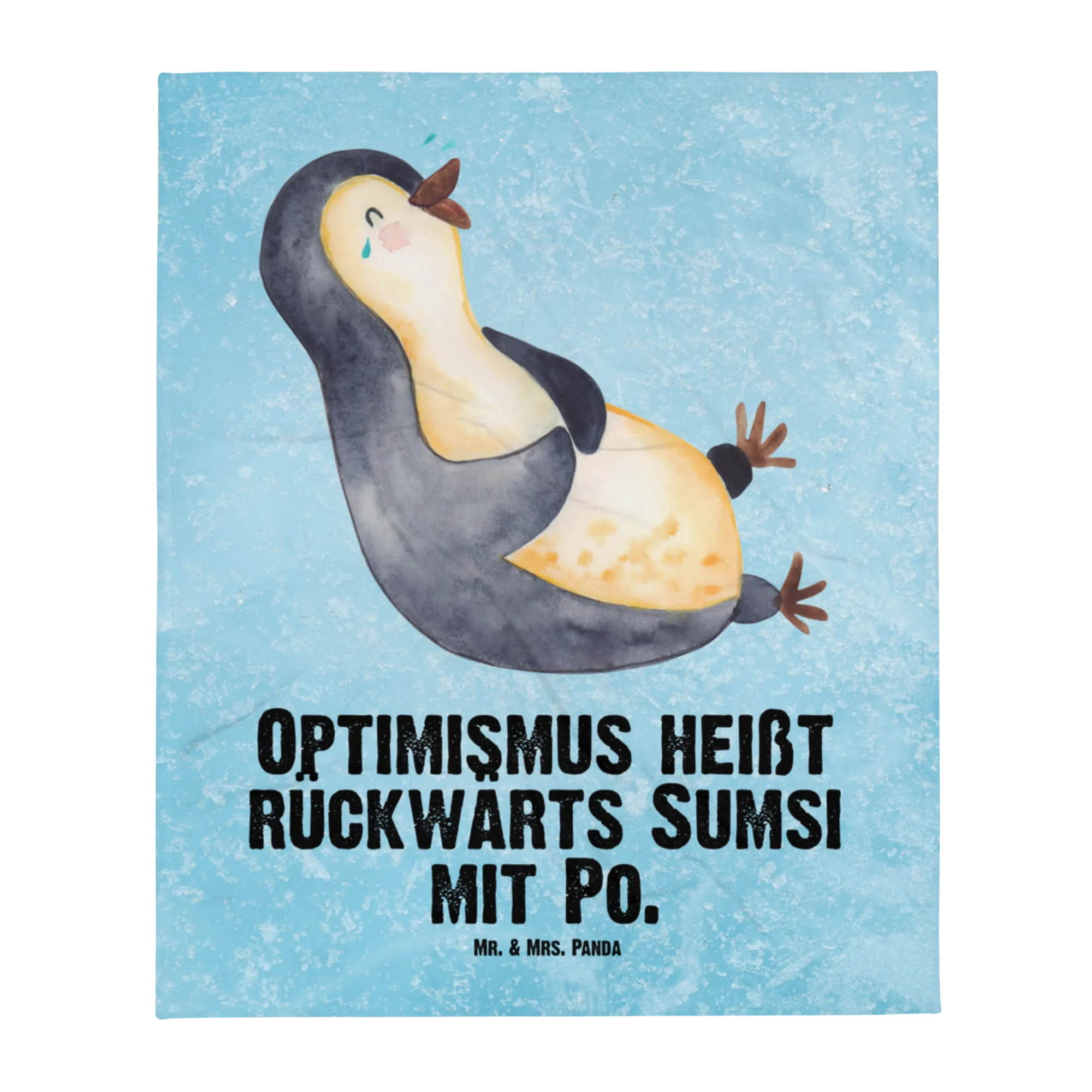 Baby blanket Penguin Laugh - with saying - Ice blue