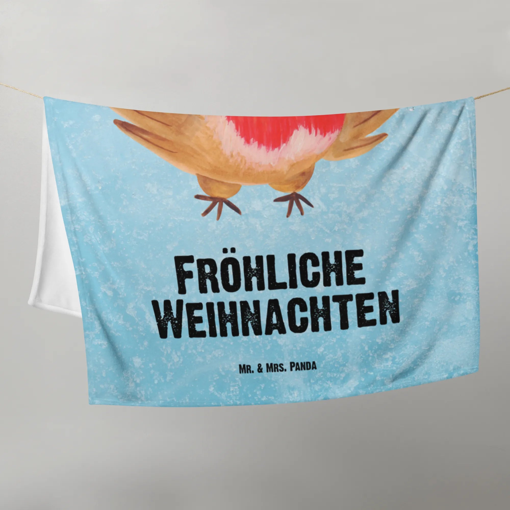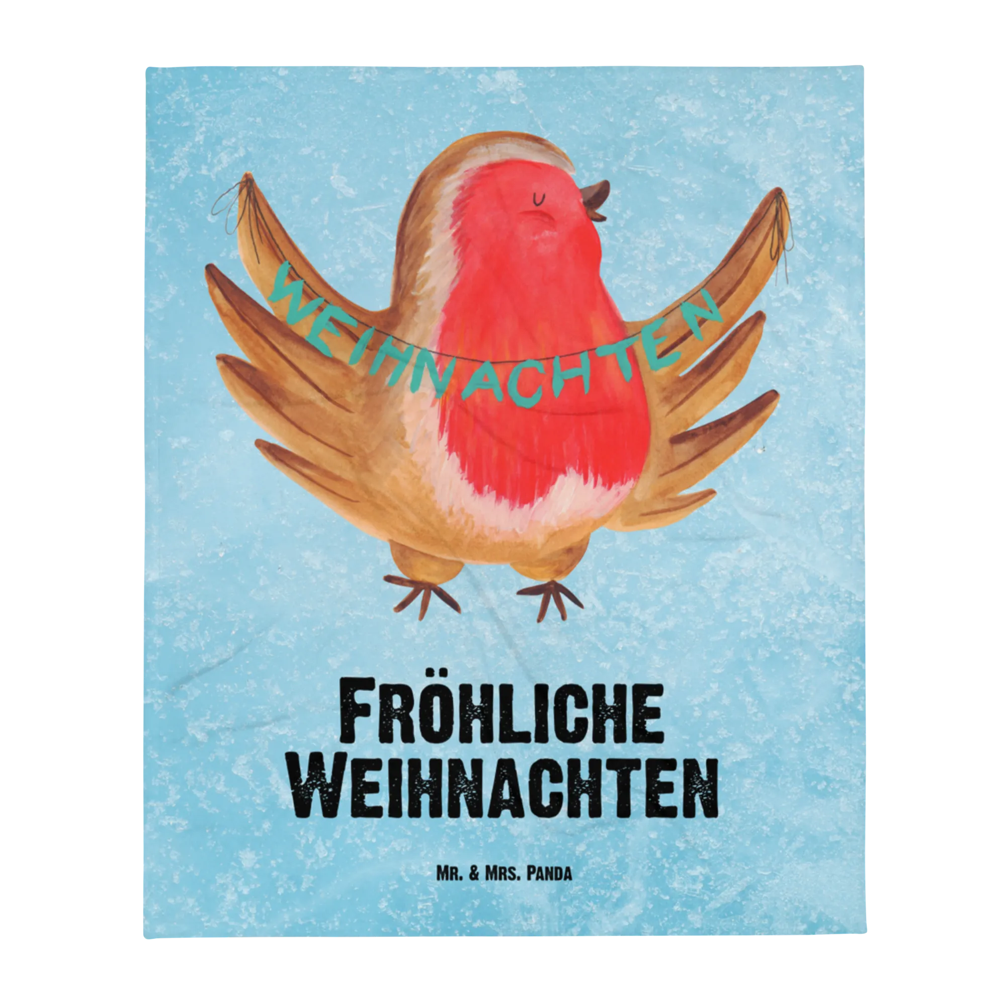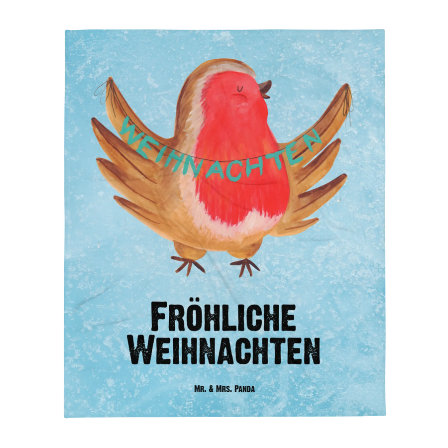 Baby blanket robin Christmas - with saying - Ice Blue