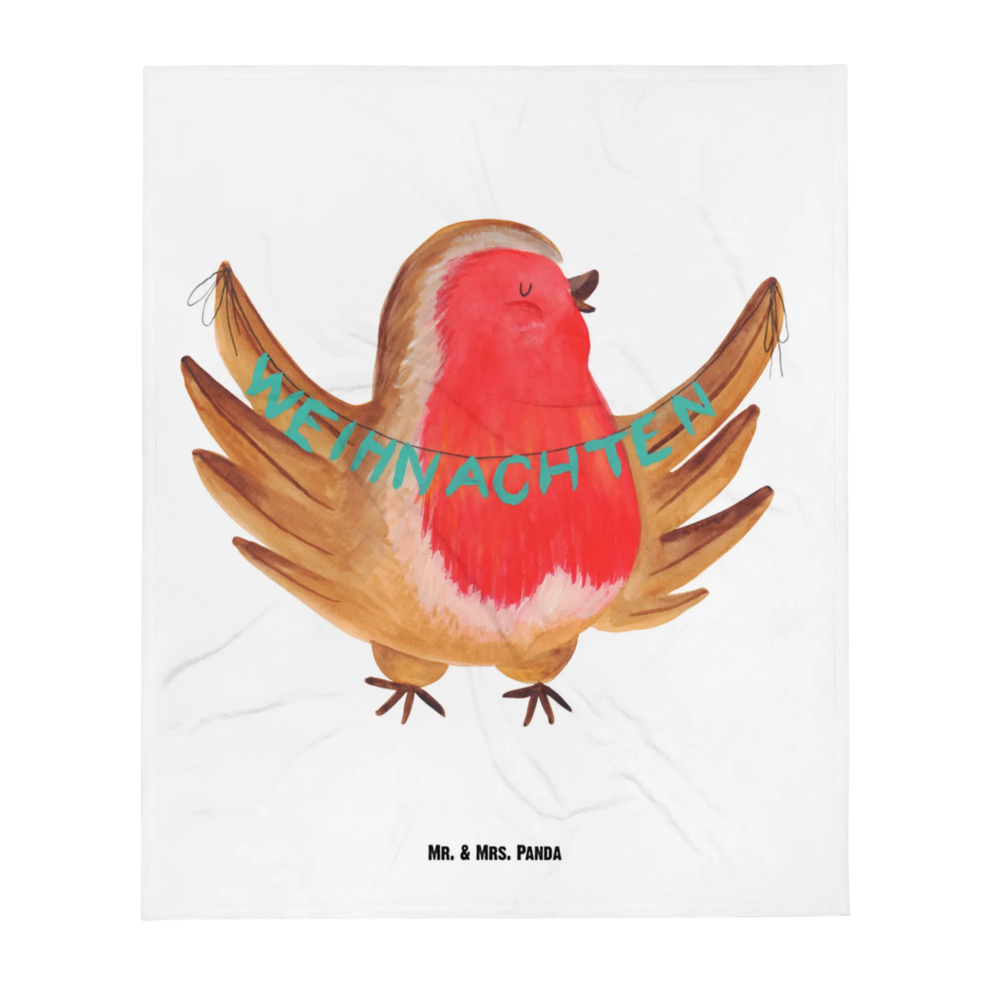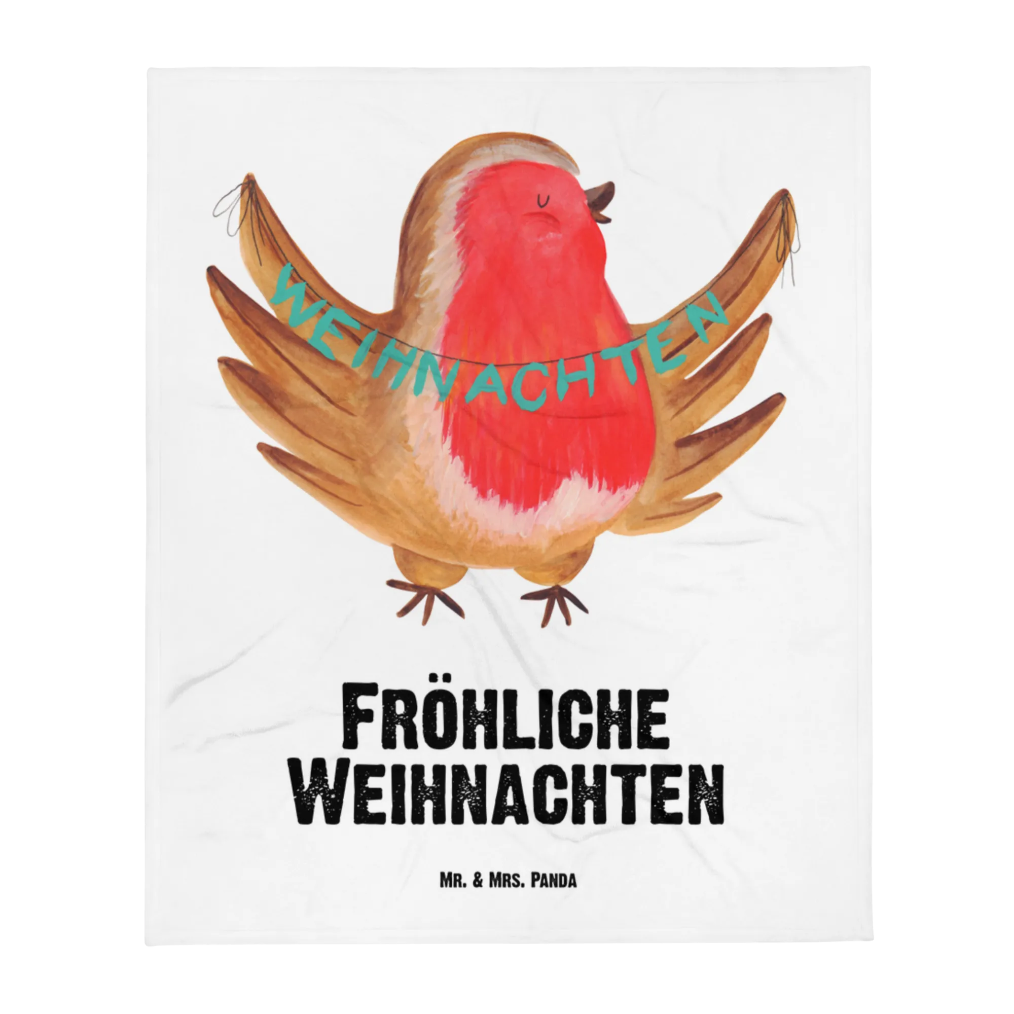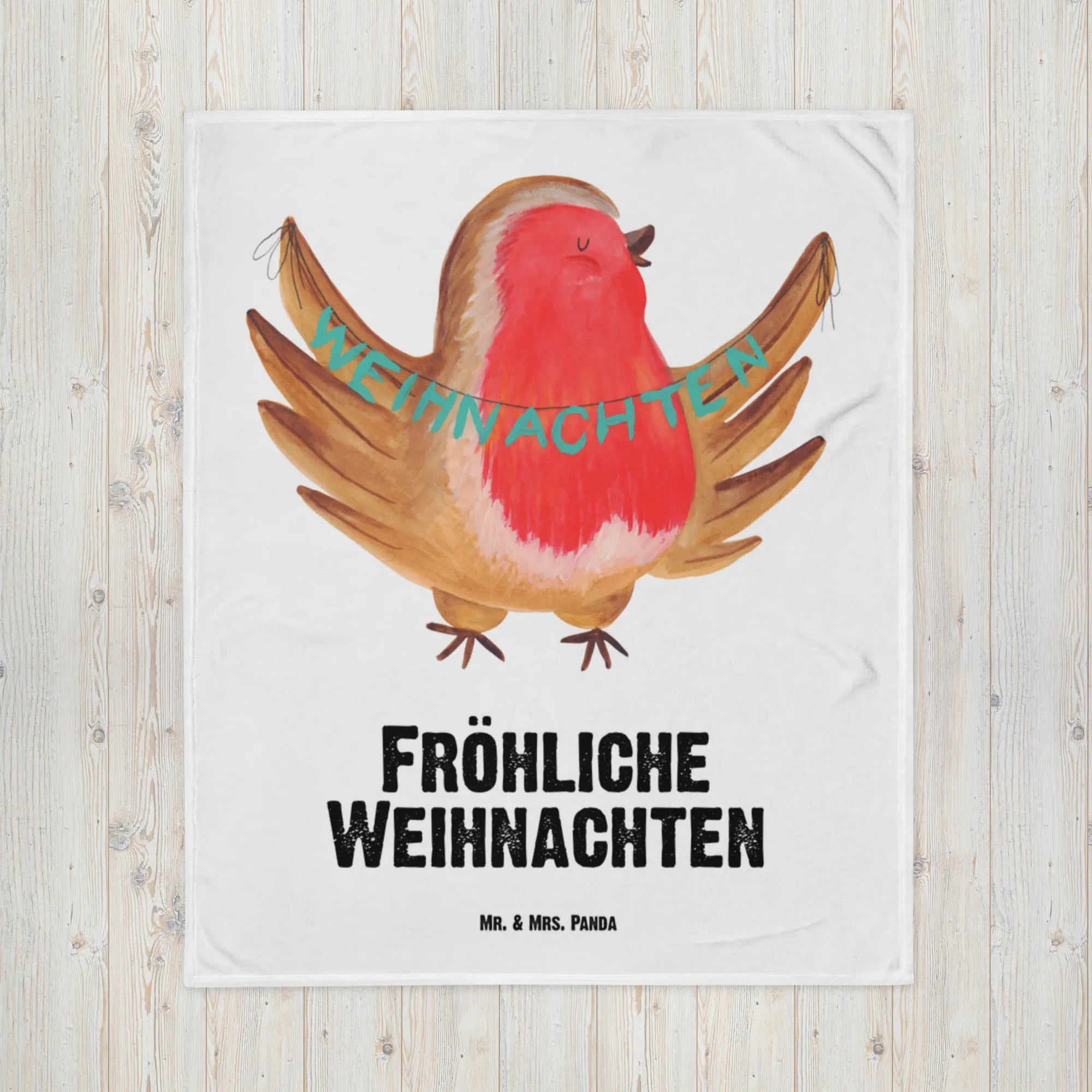 Baby blanket robin Christmas - with saying - Ice Blue