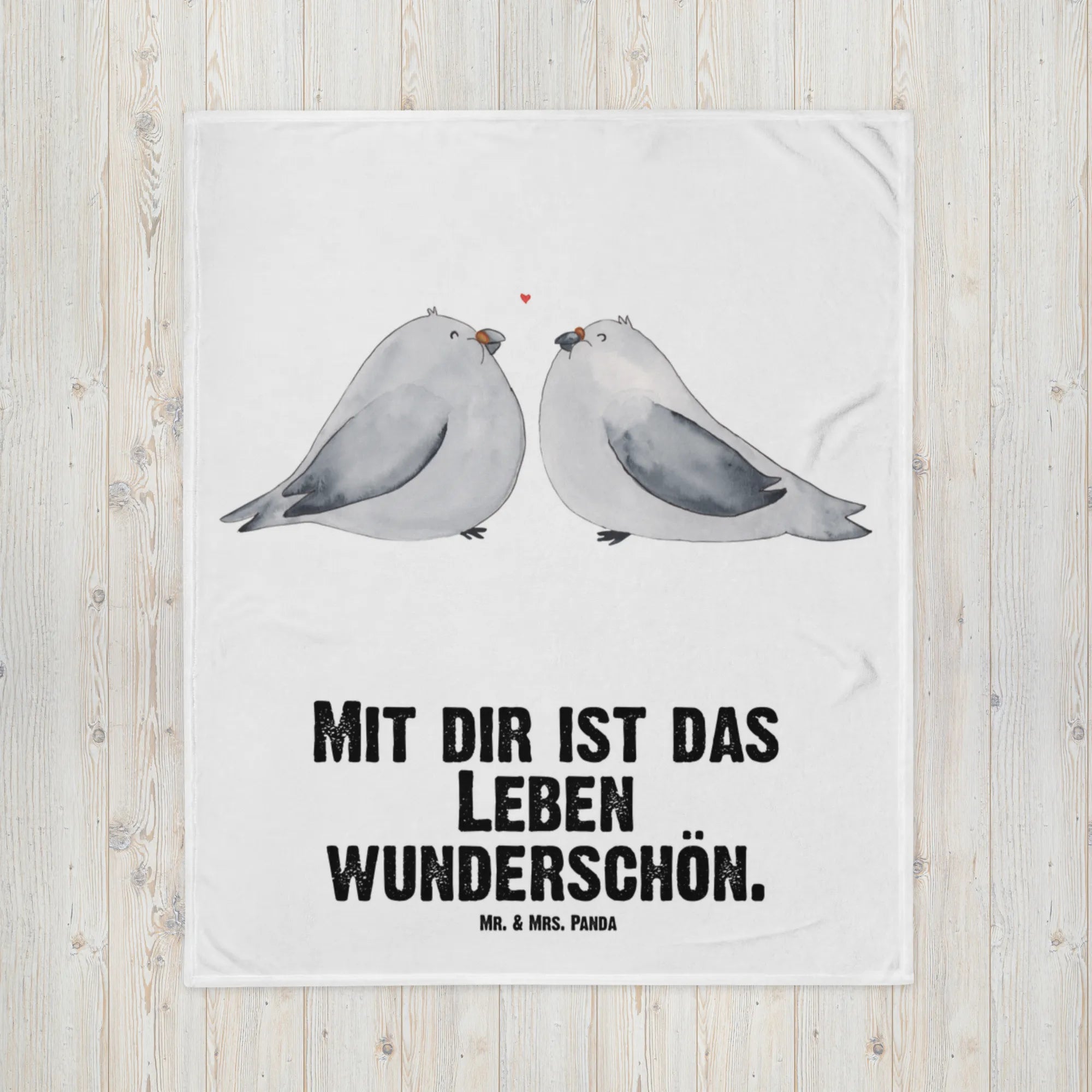 Baby blanket Turtledoves in love - with saying - Pastel Gray