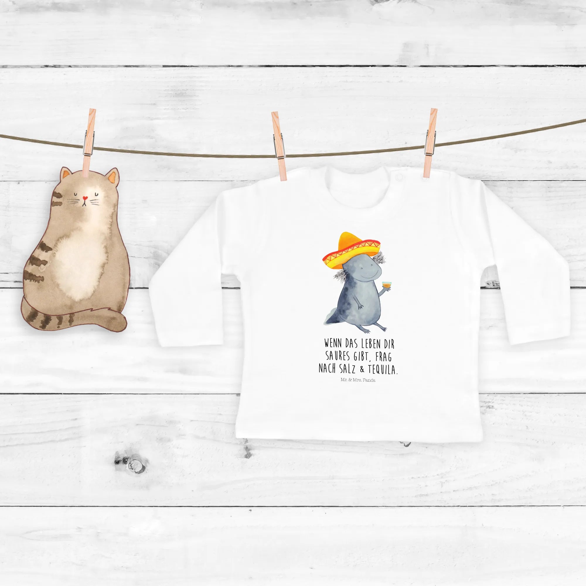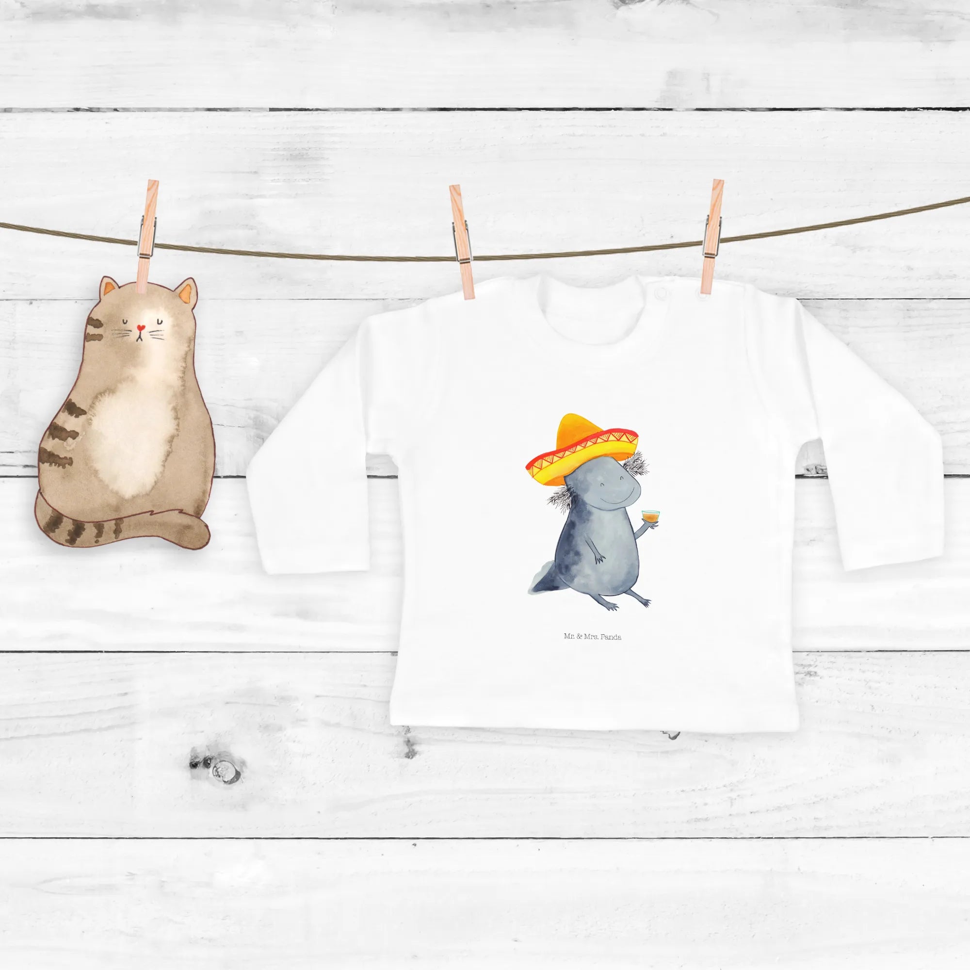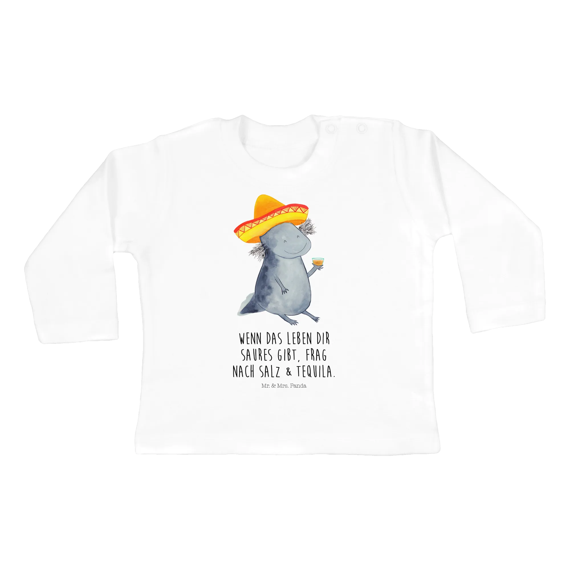 If you're on the lookout for the perfect gift for that special little one in your life, our Baby long-sleeve Axolotl Tequila shirt from the delightful Axolotl collection by Mr. & Mrs. Panda is just the thing! Specially designed for adorable babies aged 3 to 6 months, this long-sleeve shirt combines comfort, style, and a dash of whimsy that will surely brighten anyone's day.