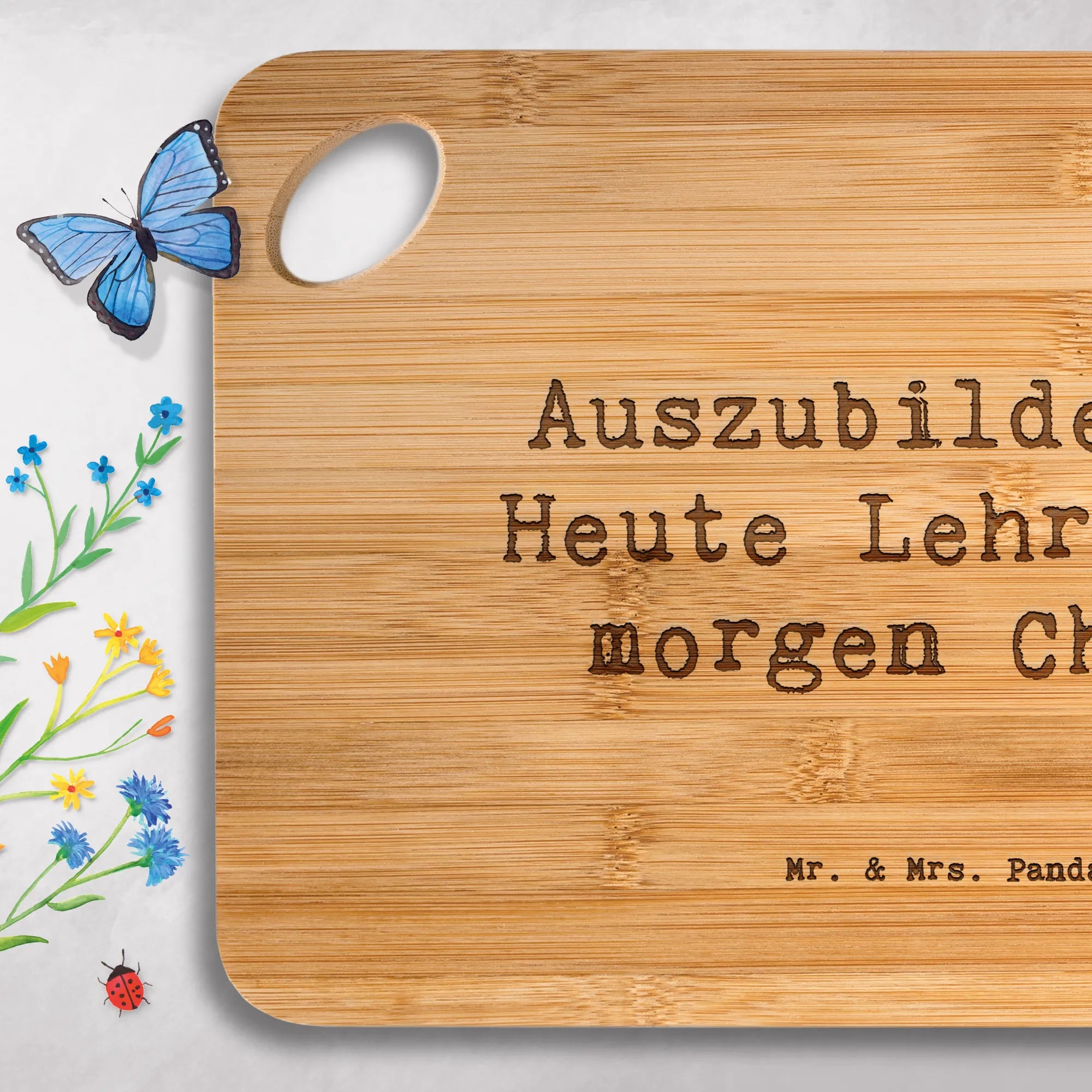 Bamboo chopping board Saying Auszubildende: Heute Lehrling, morgen Che – Mr. & Mrs. Panda