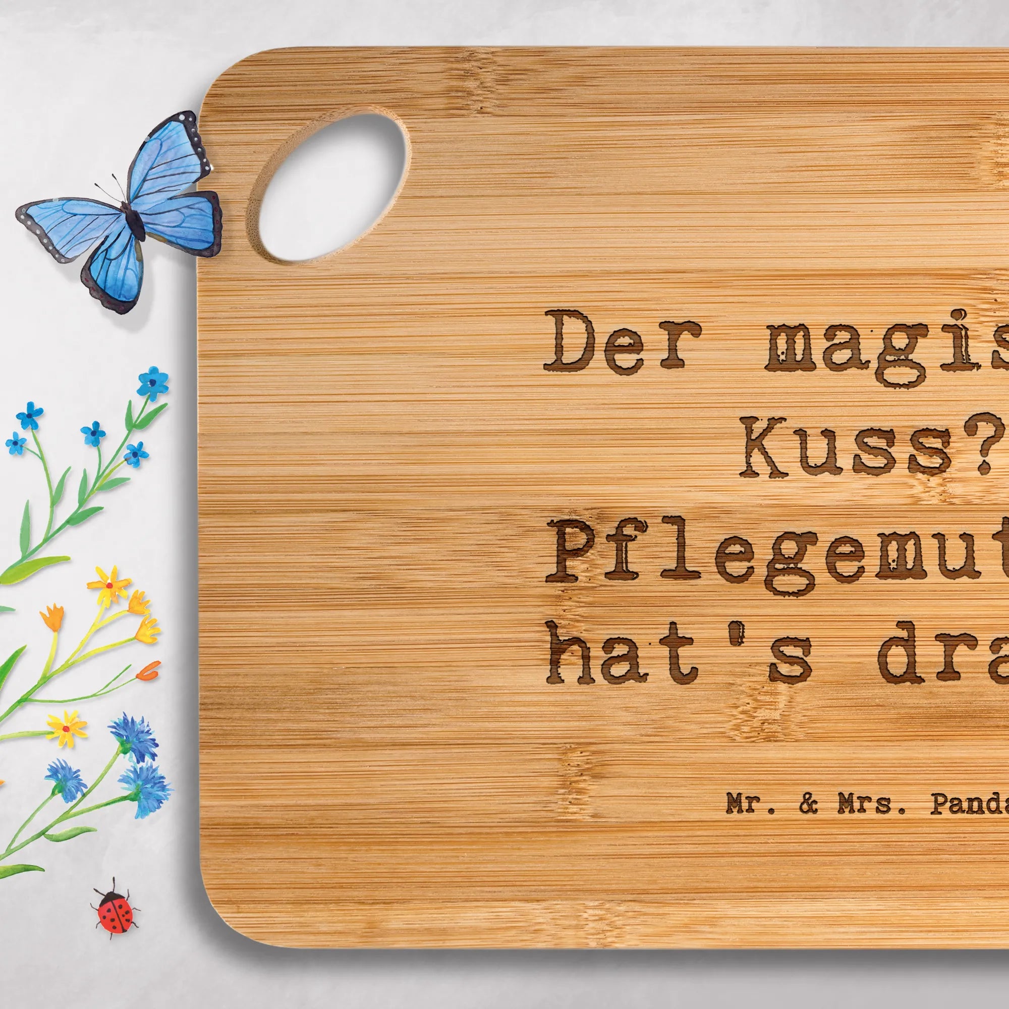 Bamboo chopping board Saying Der magische Kuss? Pflegemutter hat's drauf!