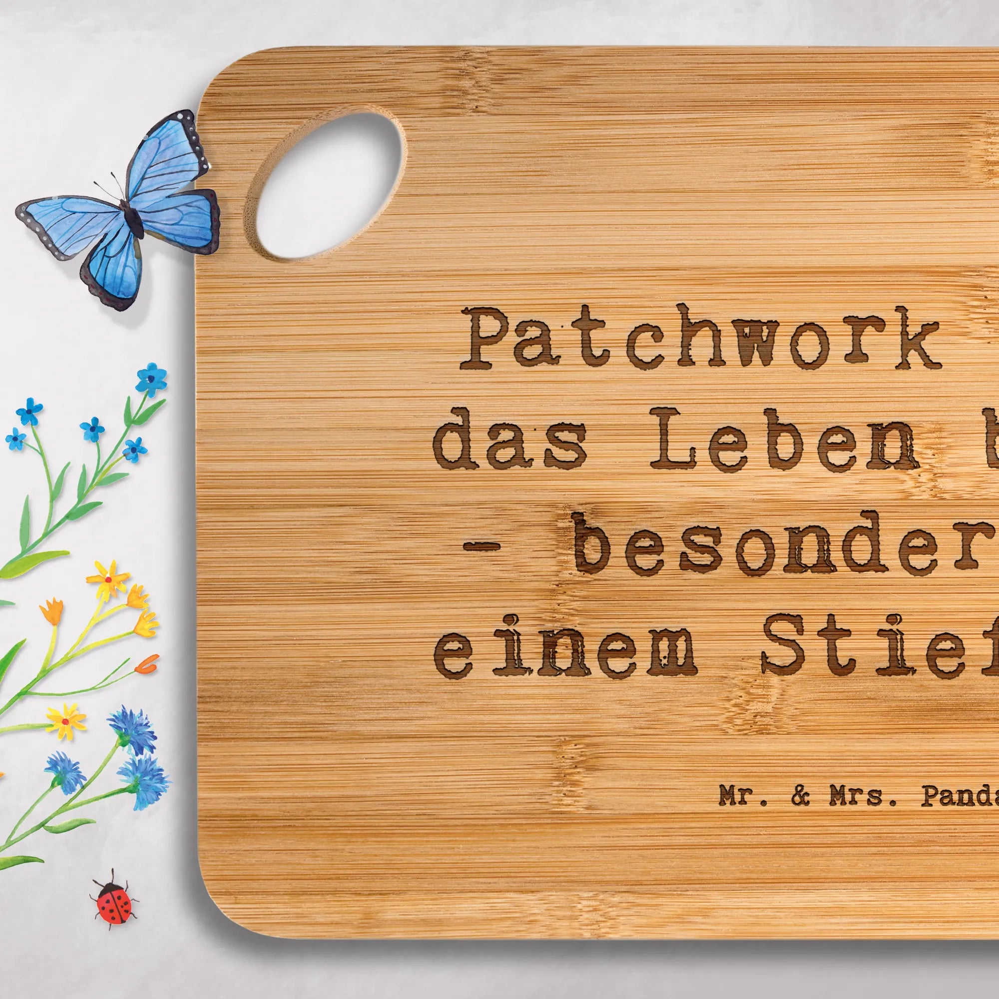 Bamboo chopping board Saying Patchwork macht das Leben bunter - besonders mit einem Stiefkind.