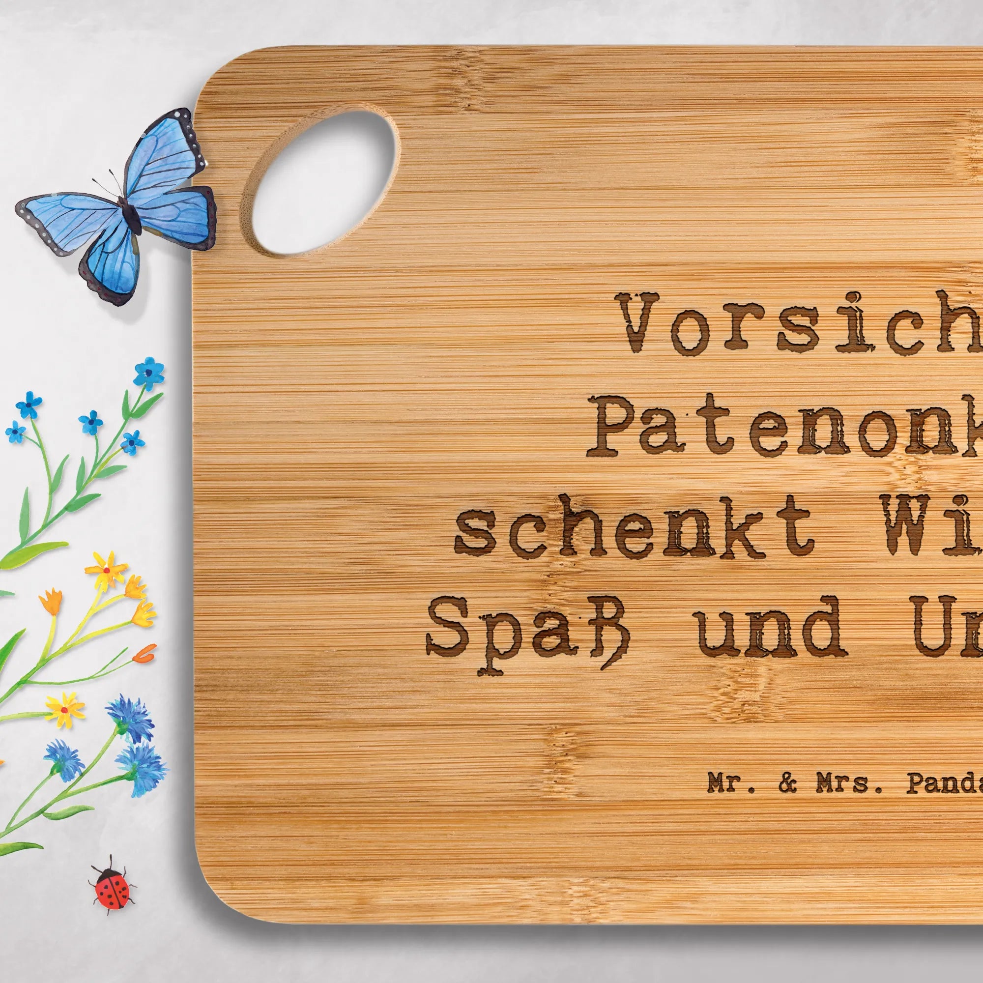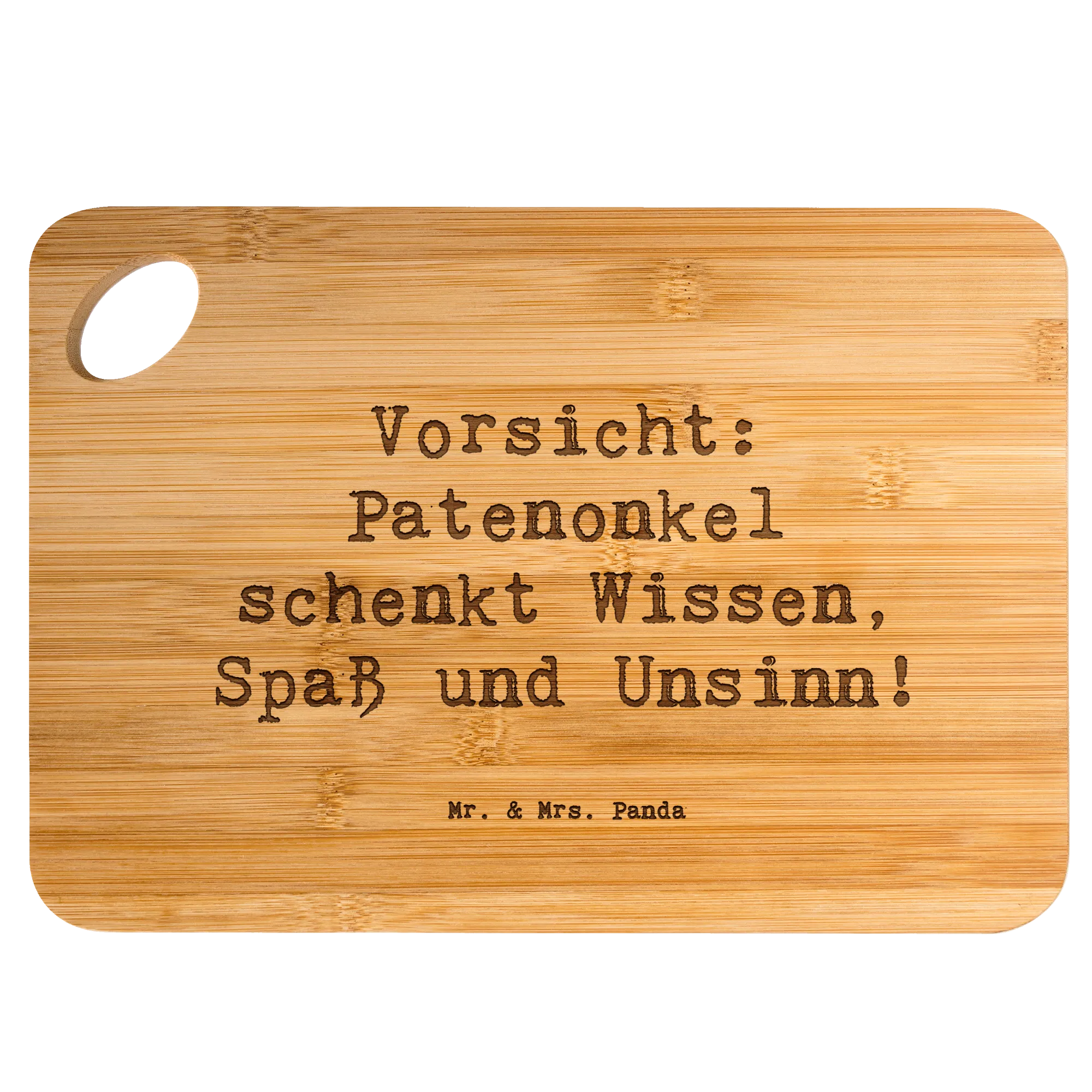 Bamboo chopping board Saying Vorsicht: Patenonkel schenkt Wissen, Spaß und Unsinn!