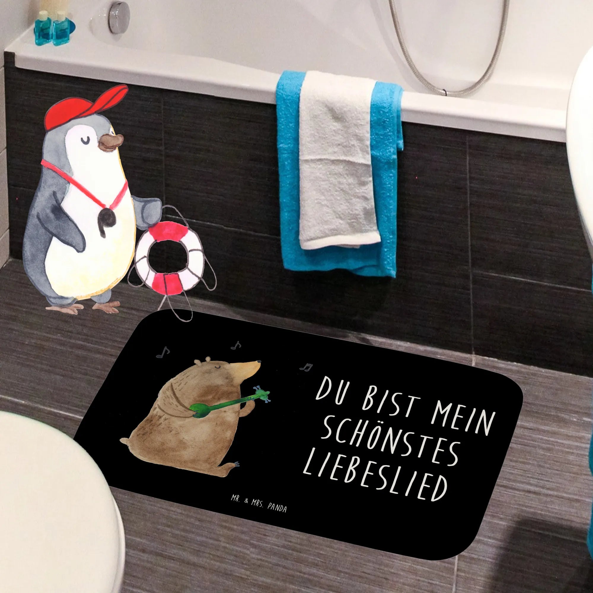 What could be more beautiful than giving a little piece of art that doubles as a daily reminder of love? The heartfelt slogan "Du bist mein schönstes Liebeslied"—meaning “You are my most beautiful love song”—is echoed in the design. This mat not only enhances the look of your bathroom but also serves as a meaningful gesture that your partner can appreciate every day.