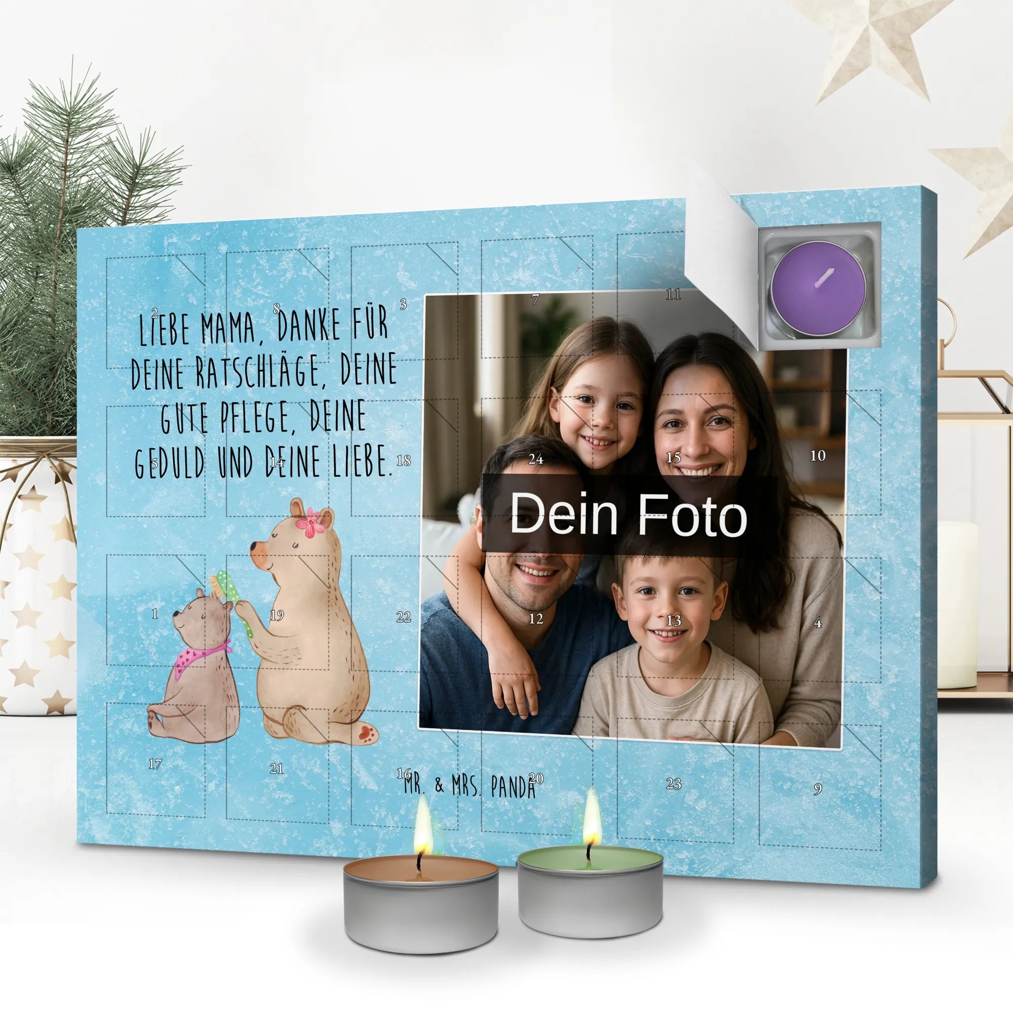 In this heartwarming scene, a gentle bear lovingly brushes the fur of a smaller bear, exuding warmth and tenderness. With a bloom-adorned hairpin, the larger bear creates a nurturing atmosphere, as the little bear, draped in a cozy scarf, relaxes with closed eyes, relishing every moment. This motif beautifully captures the special bond shared between a mother and child, capturing those precious moments of care and love. It's a perfect gift for Mother's Day, reminding us all of the invaluable support and love that mamas provide. The saying, 'Dear Mom: Thank you for all of your advice, your support, your patience, and your love,' echoes the sentiment of gratitude that springs from the heart, celebrating the beauty of motherhood.