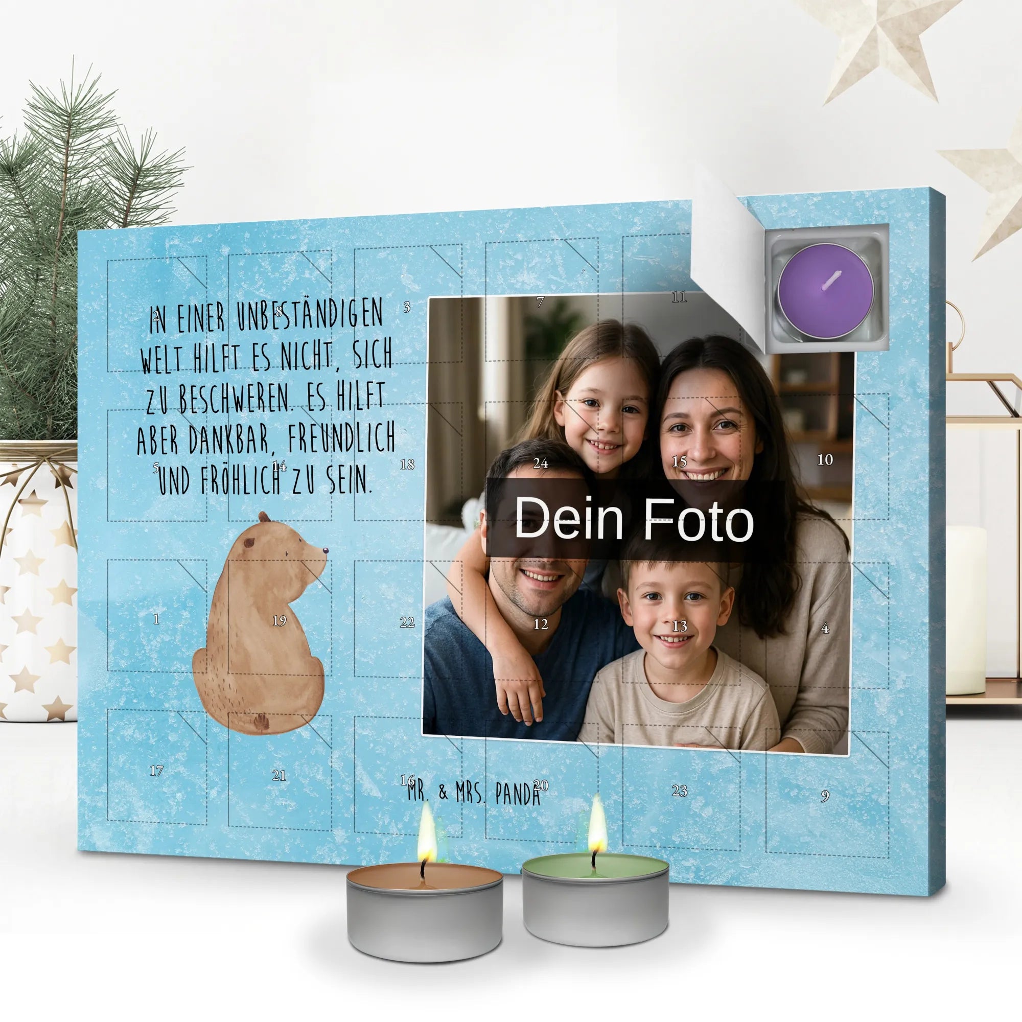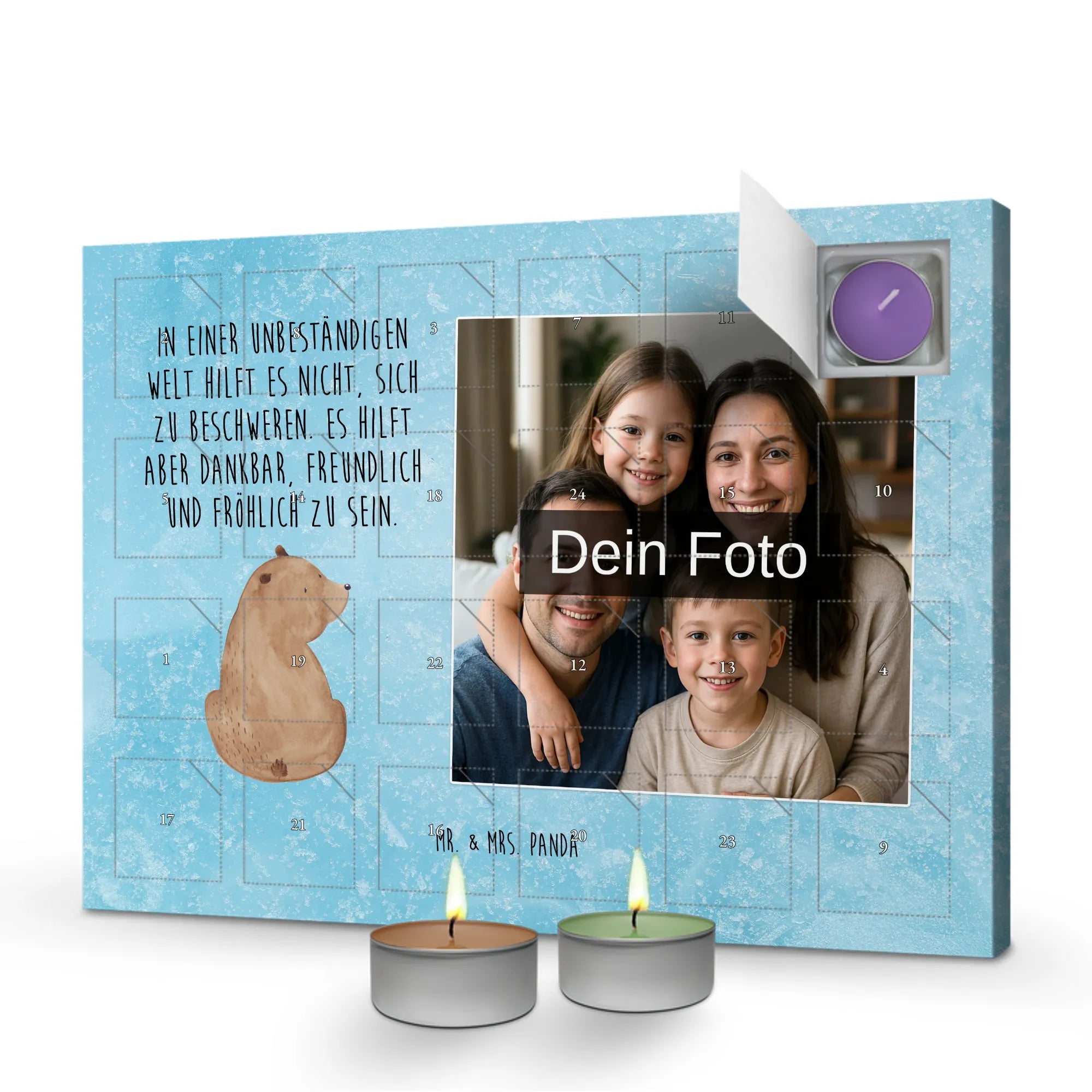 Make this Advent unforgettable with a personalized scented candle photo advent calendar that fills your home with warmth and joy. Choose a clear photo for the calendar to reveal a piece of personal memory each day. The combination of six different fragrances such as Green Tea, Pomegranate, and Oud Wood, packaged in a sturdy box that can be displayed or hung, makes every day leading up to Christmas a special experience. A must-have for anyone seeking something extraordinary.