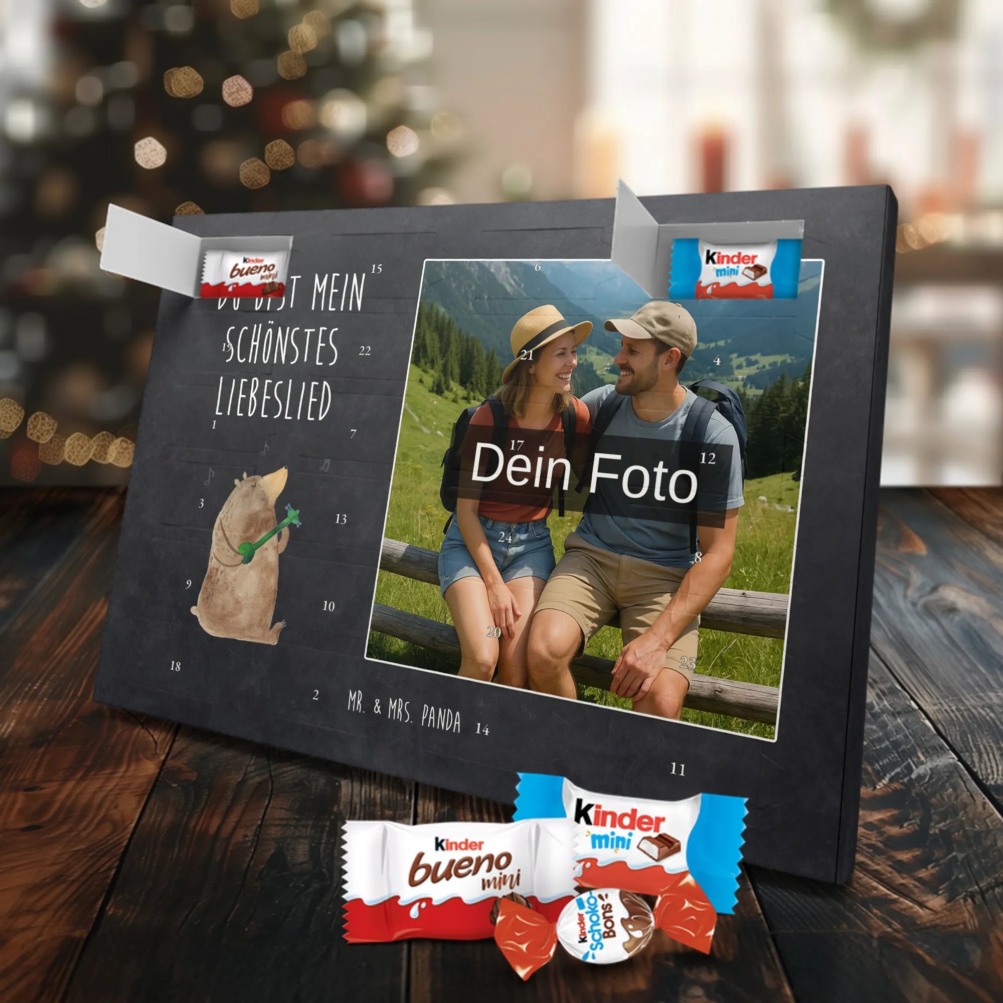 🐼 Personalisierter Schoko Foto Adventskalender mit deinem Foto, seidenmatter Druck, bedruckten Motiven & gefüllt mit kinder® Schokolade.