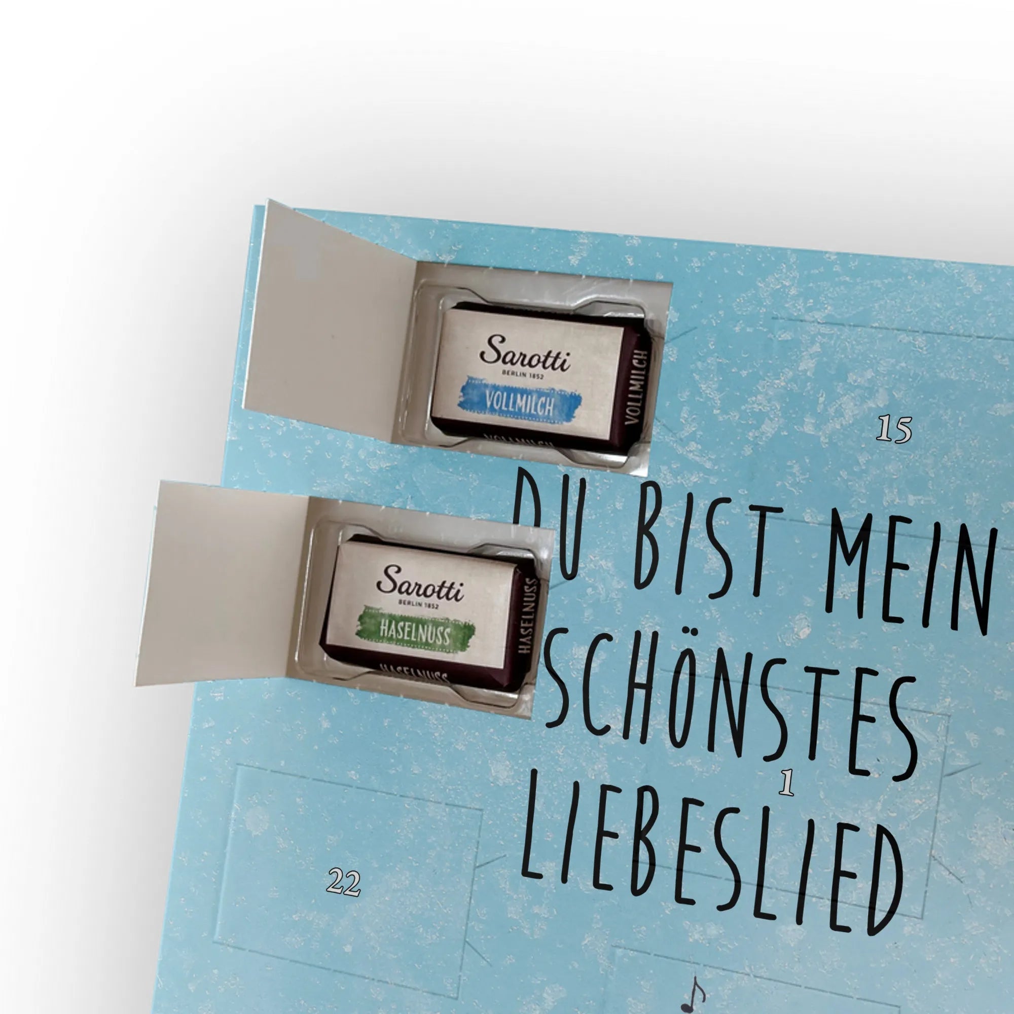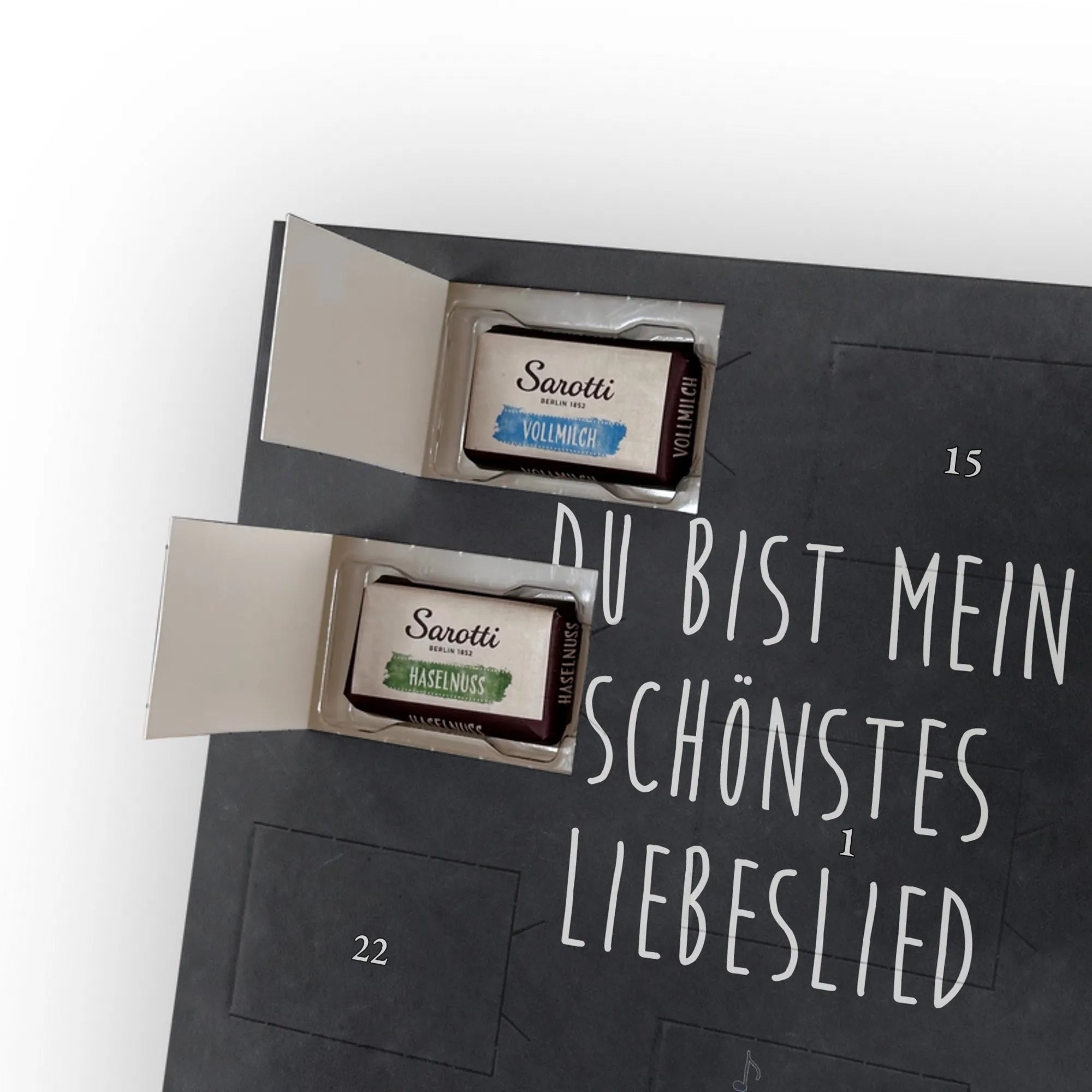 Schoko Foto Adventskalender personalisiert – ein zauberhaftes Geschenk, das Erinnerungen und Geschmack vereint. Mr. & Mrs. Panda haben liebevolle Motive und Sprüche gestaltet, die den Kalender umrahmen; dein Foto setzt die persönliche Note. Für ein optimales Druckbild lade bitte ein Foto mit hoher Auflösung hoch und achte auf einen passenden Bildausschnitt, damit wichtige Details nicht abgeschnitten werden. Bitte nur Bilder verwenden, für die du die Rechte besitzt. Die seidenmatte Oberflächenveredelung sorgt für edle Haptik und die bedruckten Seitenflächen für ein rundum gelungenes Design. Maße: 355 mm x 245 mm x 11 mm – kann aufgehängt oder aufgestellt werden. Wichtiger Hinweis: Wir bearbeiten oder schneiden die Fotos nicht nach; eine Rücknahme personalisierter Foto Artikel ist ausgeschlossen. Gefüllt mit 24 einzeln verpackten Schokoladentäfelchen in den Geschmacksrichtungen Vollmilch, Nougat, Zartbitter und Haselnuss von Sarotti® und Confiserie Heidel®. Insgesamt enthält der Kalender 107 g Markenschokolade. Ideal als Geschenk für Partner, Familie oder Freunde – persönlich, süß und liebevoll verpackt von Mr. & Mrs. Panda.