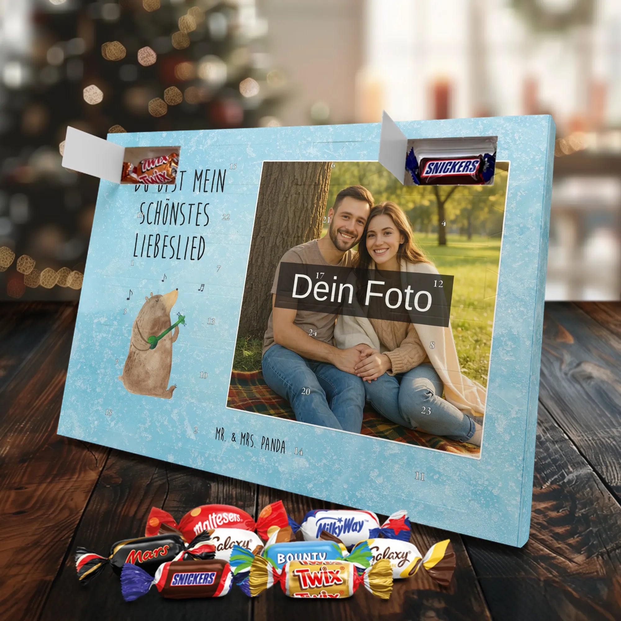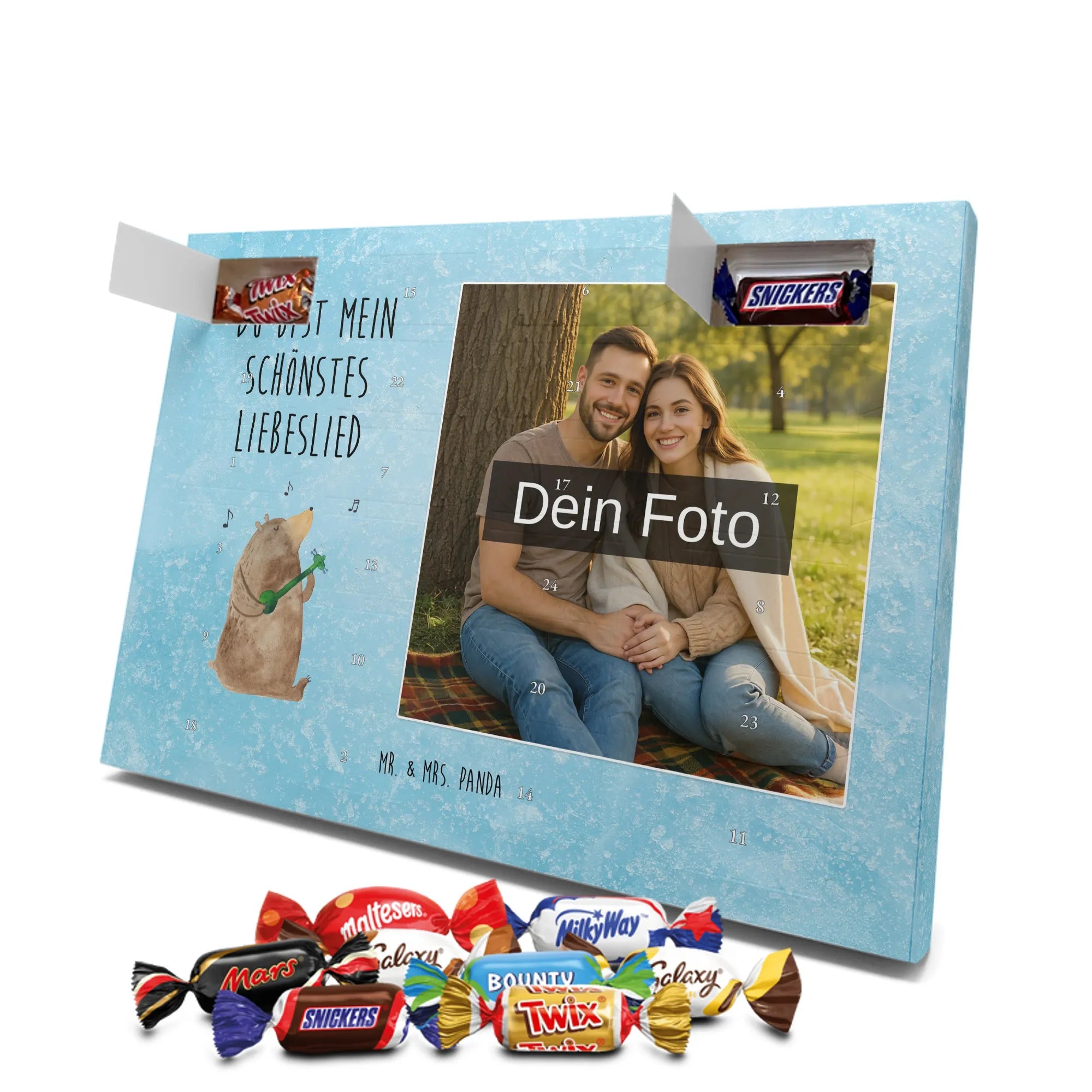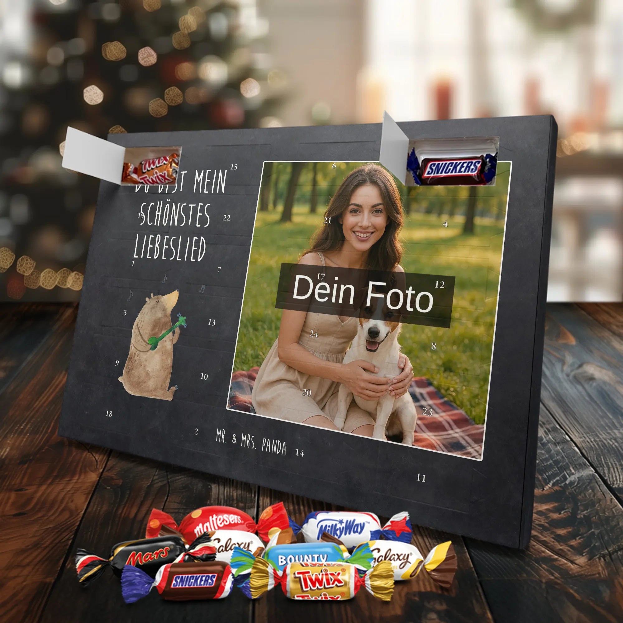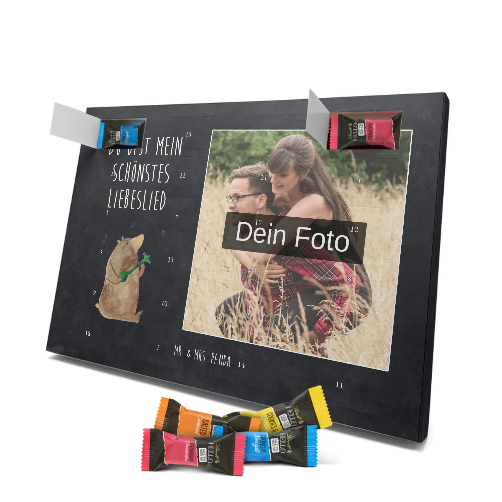 🐼 Ideales Foto-Geschenk: Personalisierter Schoko Foto Adventskalender mit Mr. & Mrs. Panda Sprüchen und deinem Bild.