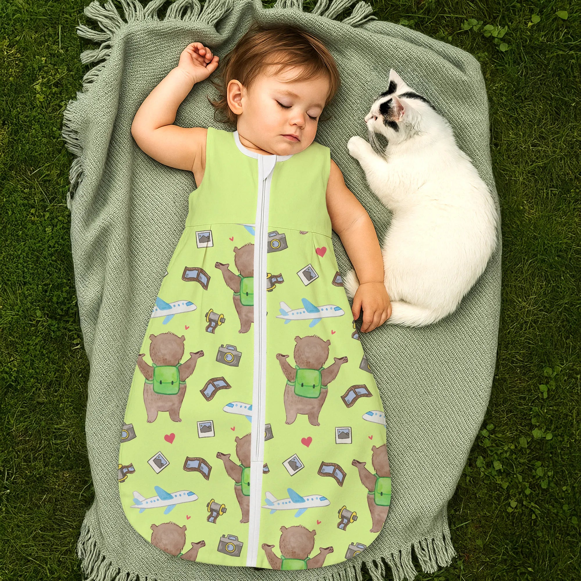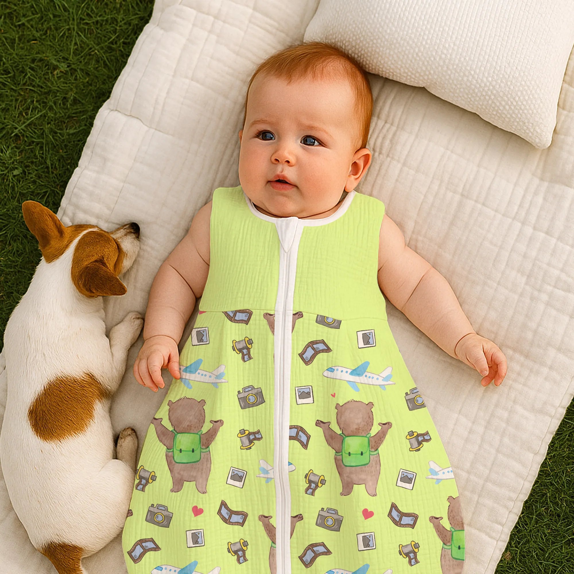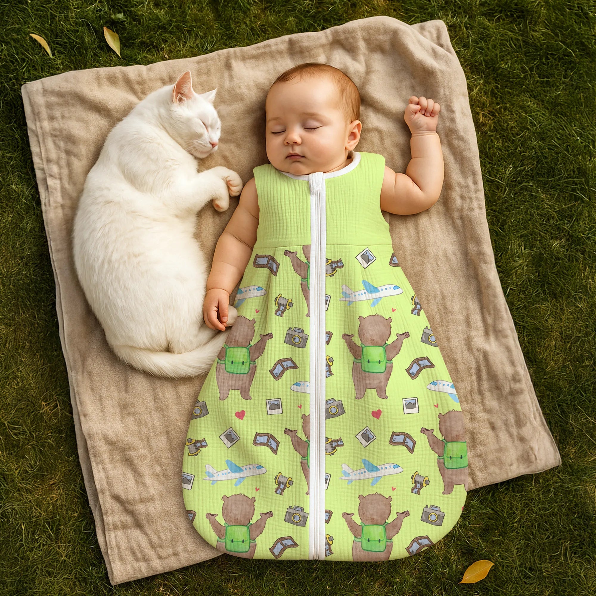 The baby sleeping bag from Mr. & Mrs. Panda combines charming design with maximum comfort. As a baby sleeping bag, it is printed with cute motifs and sayings from Mr. & Mrs. Panda and delights with very bright colors. The soft, breathable fabric ensures a high level of wearing comfort and a pleasant fit that makes dressing and undressing easier. A practical zipper allows quick diaper changes, while the fine binding at the neckline, sleeves and leg openings is gentle on the skin. Depending on the variant, it is available in different materials, including skin-friendly cotton, and comes in many sizes — please refer to the size chart. Not customizable and handmade for you. Easy care: machine washable at a maximum of 30 °C; gentle detergents recommended.