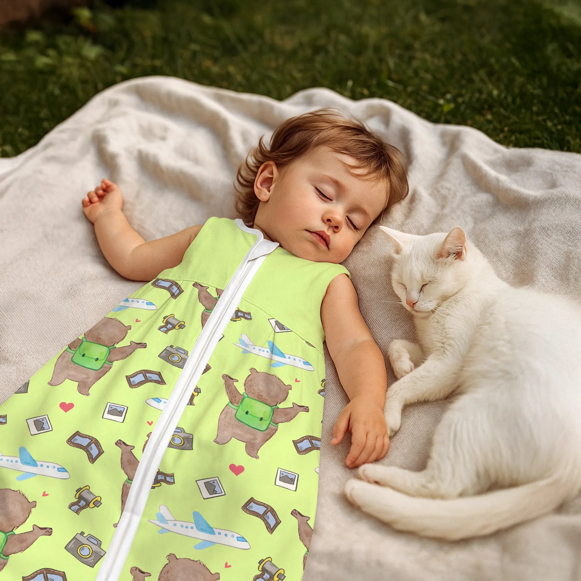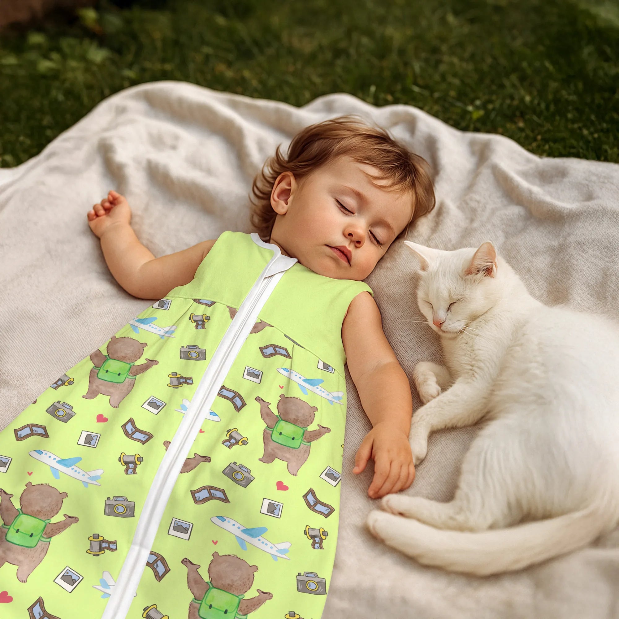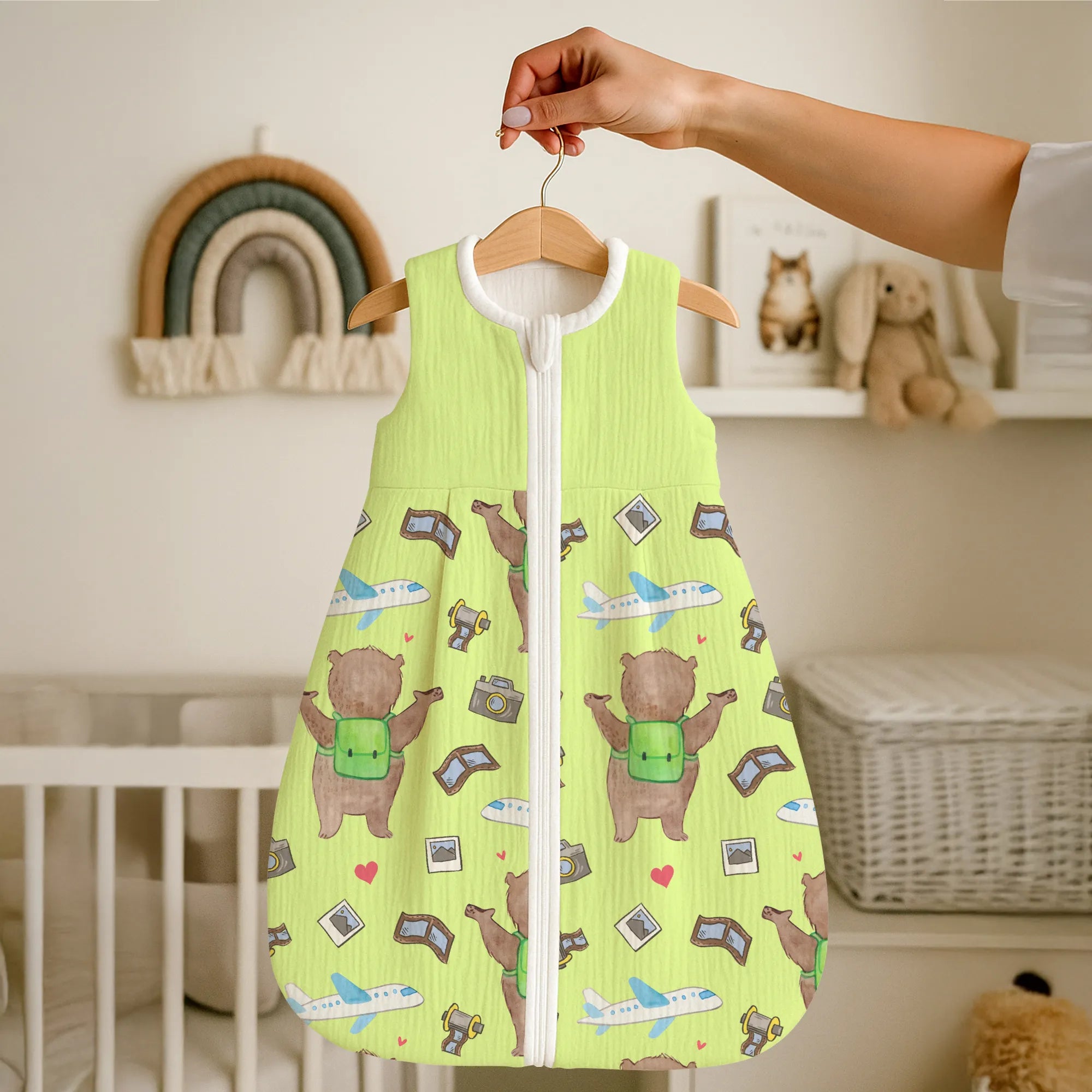The baby sleeping bag from Mr. & Mrs. Panda combines charming design with maximum comfort. As a baby sleeping bag, it is printed with cute motifs and sayings from Mr. & Mrs. Panda and delights with very bright colors. The soft, breathable fabric ensures a high level of wearing comfort and a pleasant fit that makes dressing and undressing easier. A practical zipper allows quick diaper changes, while the fine binding at the neckline, sleeves and leg openings is gentle on the skin. Depending on the variant, it is available in different materials, including skin-friendly cotton, and comes in many sizes — please refer to the size chart. Not customizable and handmade for you. Easy care: machine washable at a maximum of 30 °C; gentle detergents recommended.