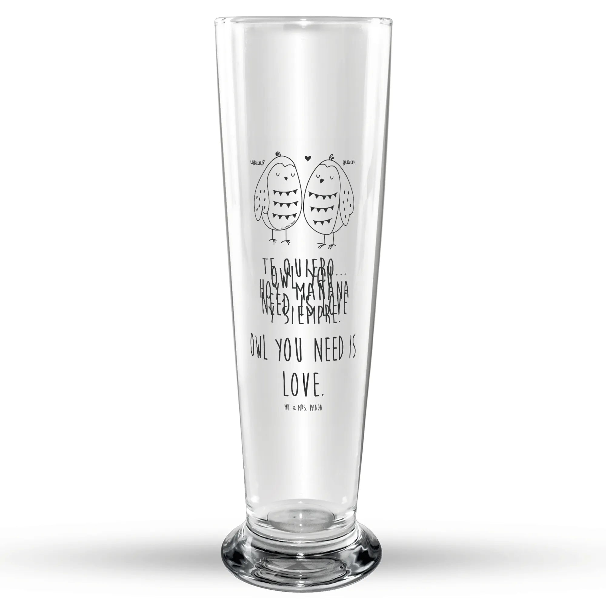 Beer glass owls Love - with a saying