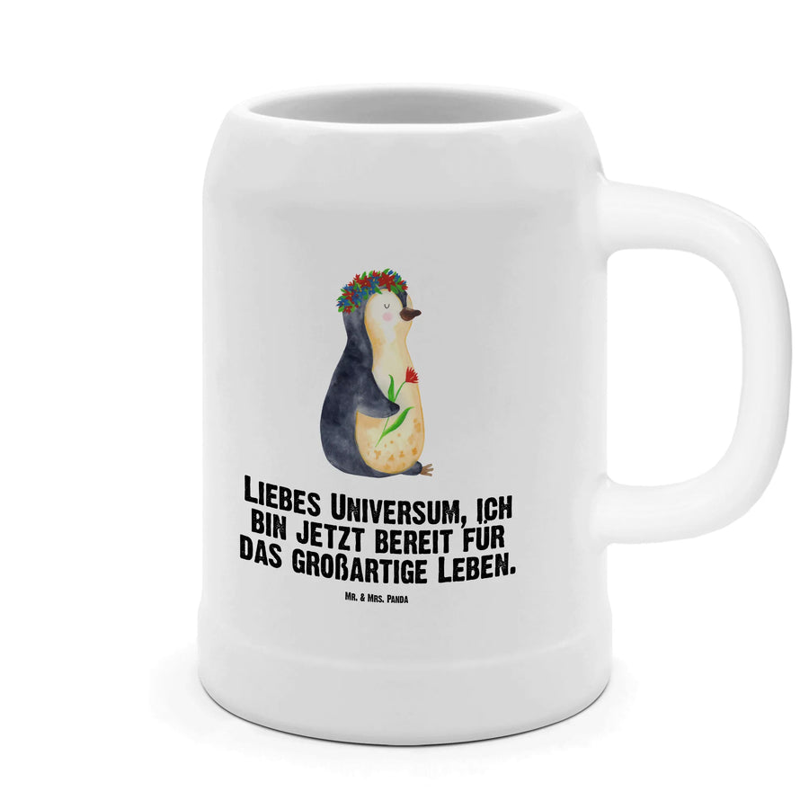Beer mug Penguin Flower - with a saying