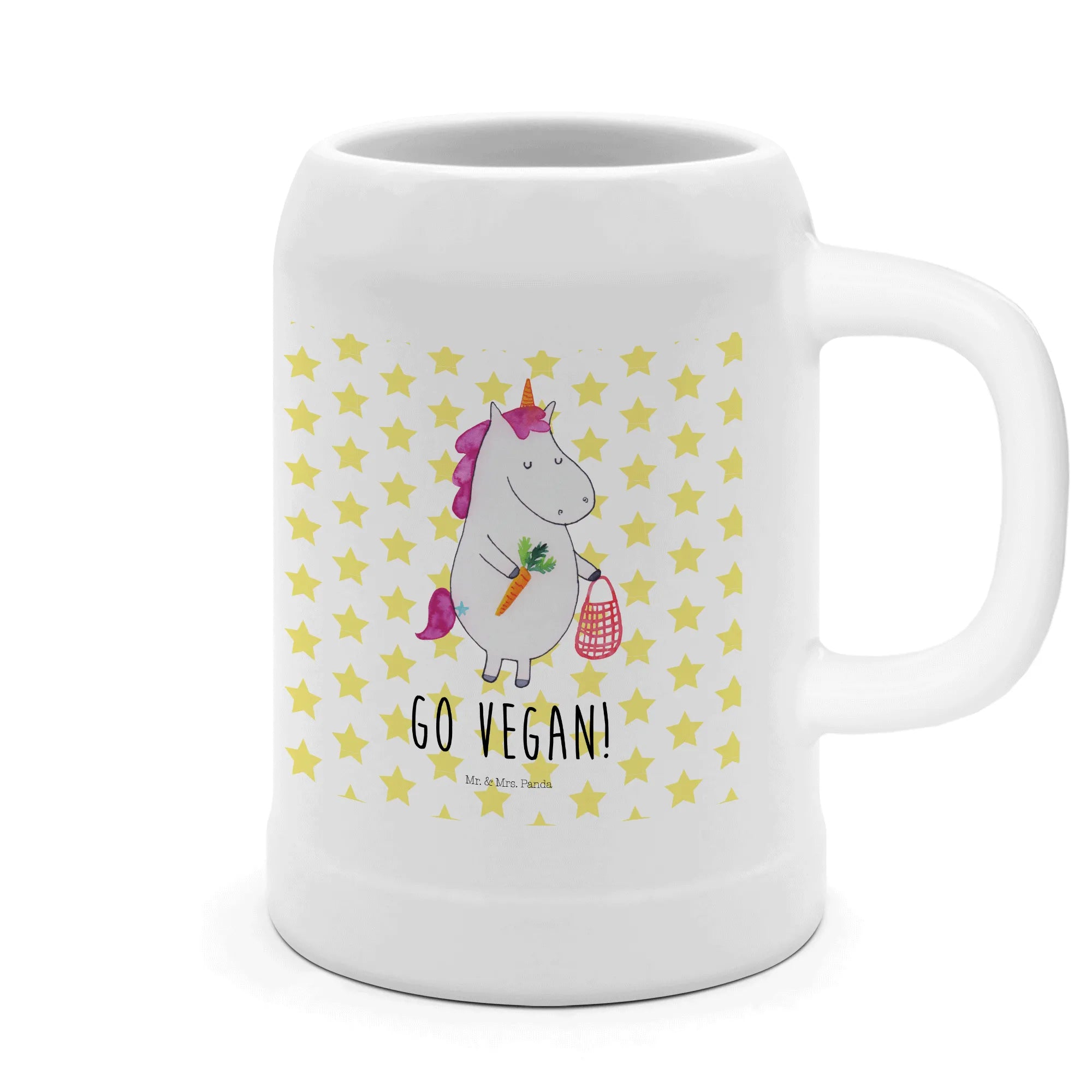 Crafted from robust stoneware, this beer mug brings a rustic yet chic feel to your kitchen or beer garden. Its smooth, glossy finish showcases a hand-drawn unicorn with a shopping bag full of vegan goodies, making it not only functional but also a delightful decorative piece. The whimsical design is a wonderful conversation starter and a lovely way to express your quirky personality or share your passion for veganism.