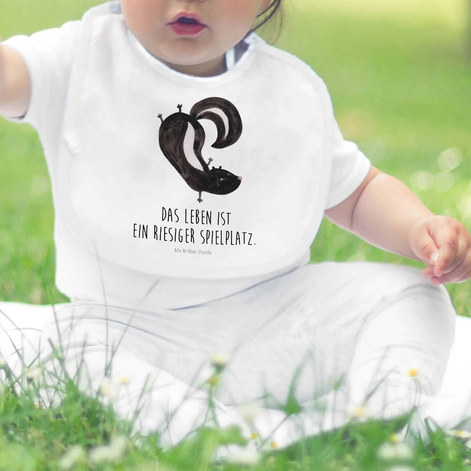 But what truly sets this bib apart is its charming skunk motif. Imagine your child sporting a cute skunk doing a playful handstand - how delightful! The design is inspired by Mr. Flower, Mrs. Panda's beloved pet, and each bib is lovingly created to bring joy and fond memories.