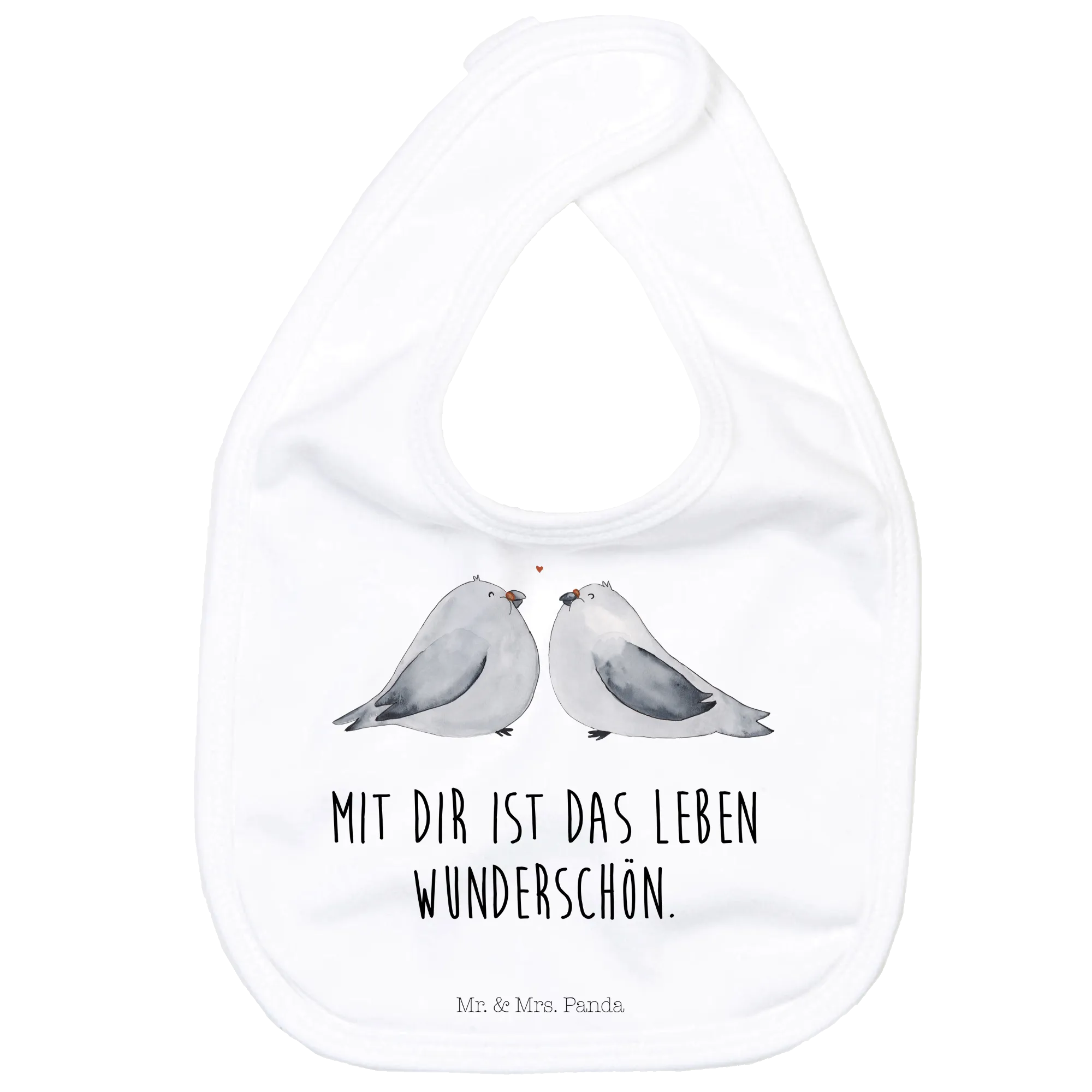 Introducing the lovely Turtledoves in Love bib from the Mr. & Mrs. Panda "Love" collection, the perfect blend of practicality and sweetness for your little one! This adorable baby bib is designed not only to keep your little munchkin clean during those messy feeding times but also to add a touch of love and charm to their outfit. With its cute motif of two loving turtledoves, this bib beautifully captures the essence of love, affection, and connection. You’ll find two stylized doves lovingly leaning towards each other, with a tiny red heart floating between their beaks—an adorable representation of enduring love.
