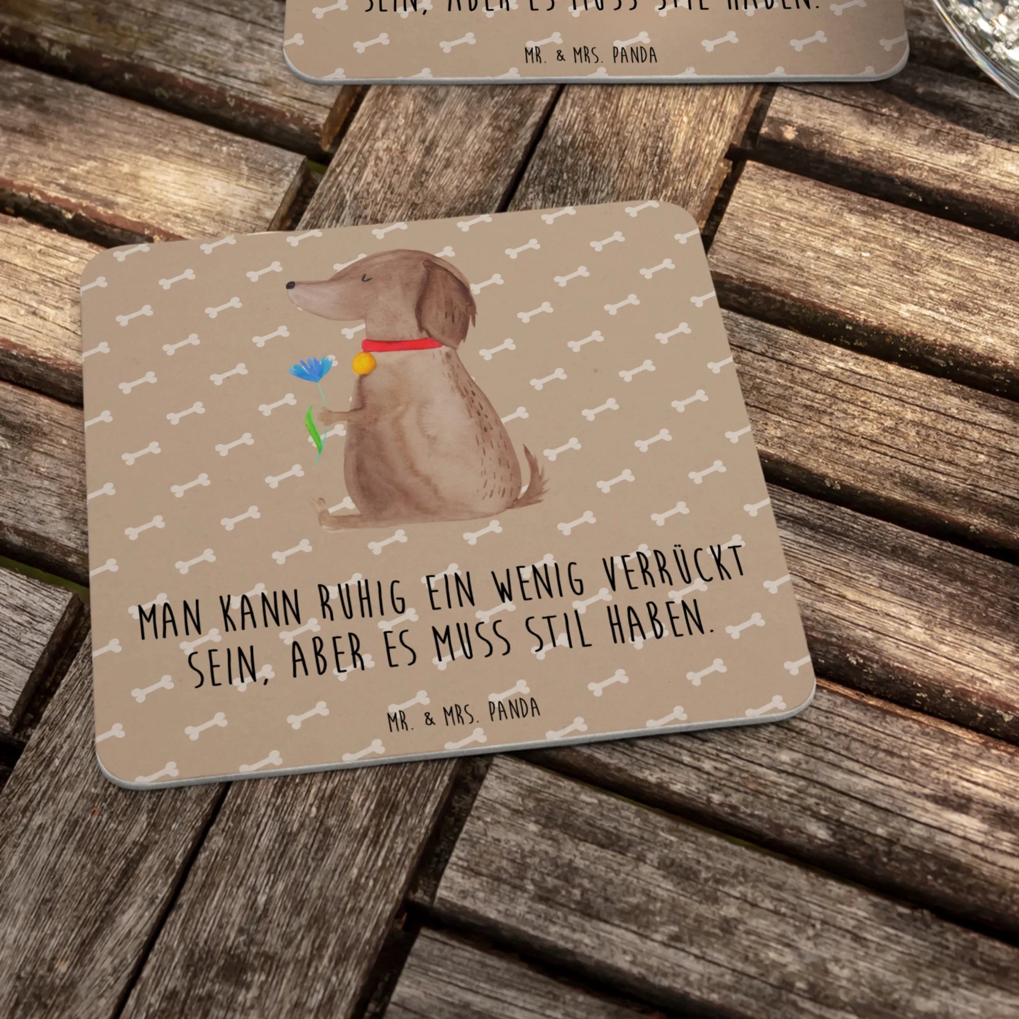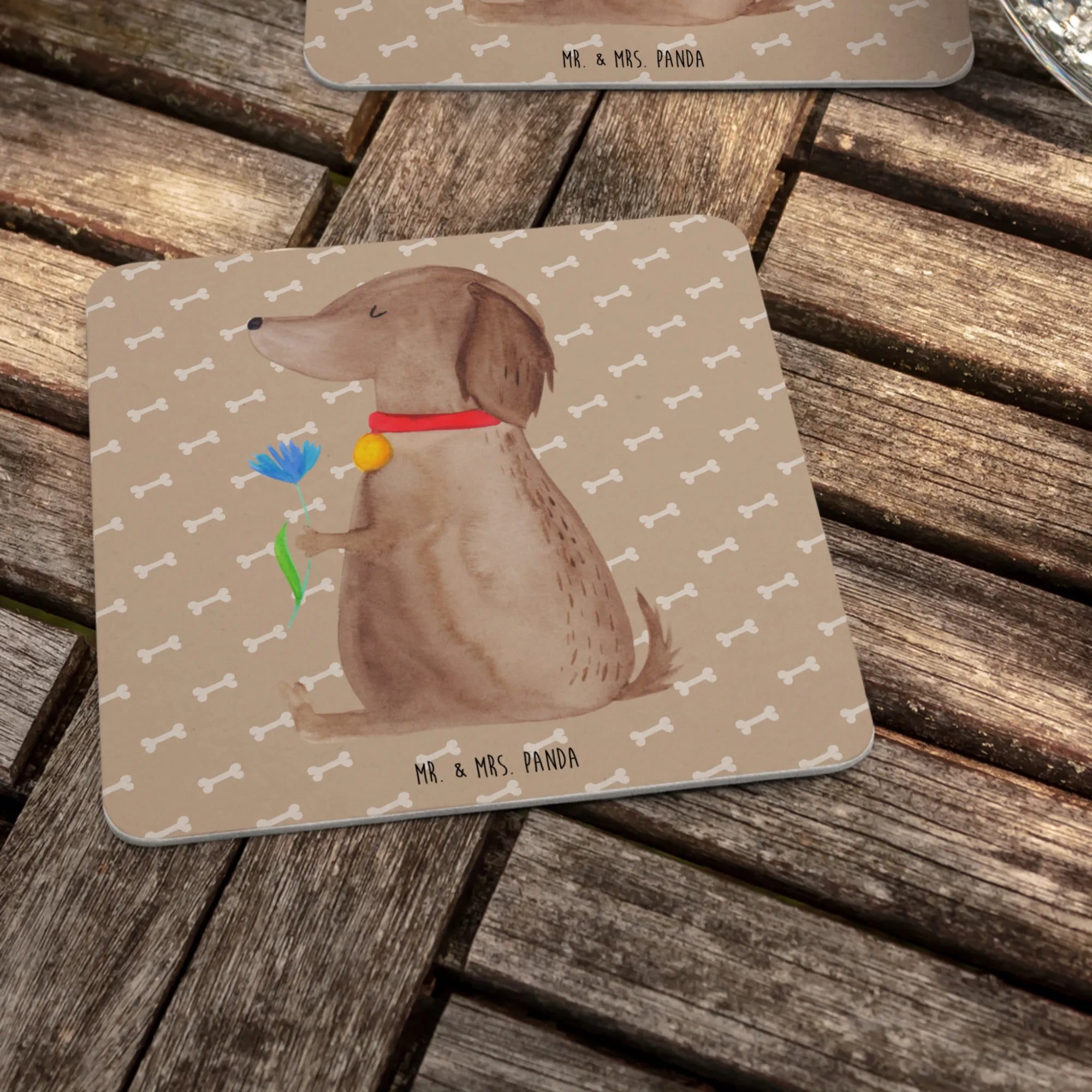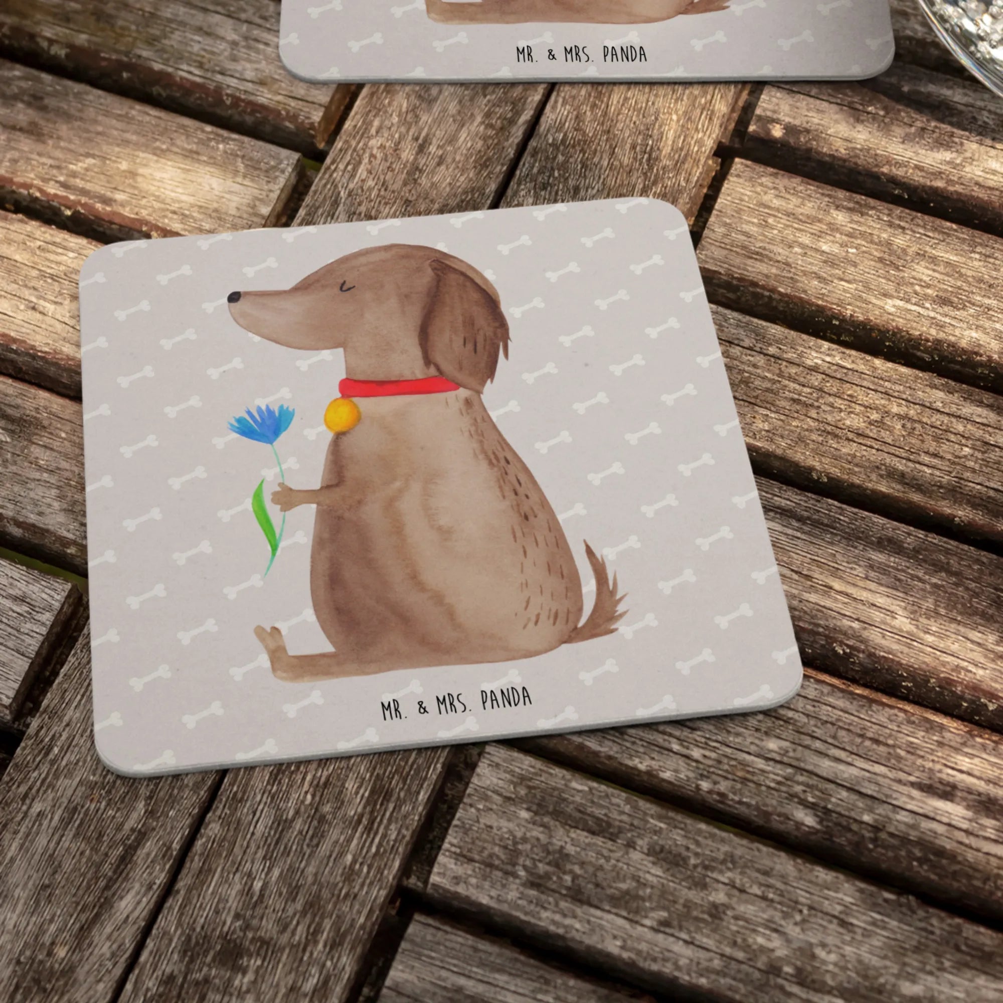 Entdecke den wundervollen Bierdeckel mit dem niedlichen Motiv "Hund Blume" aus der Hunde Kollektion von Mr. & Mrs. Panda! Dieser Bierdeckel ist nicht nur ein praktisches Utensil, sondern auch ein liebevolles Accessoire, das jedem Tisch das gewisse Etwas verleiht. Er schützt deinen Tisch vor unschönen Abdrücken und Kratzern und bringt gleichzeitig ein Lächeln auf die Gesichter deiner Gäste. Besonders Hundeliebhaber werden dieses Design lieben. Die süße Hündin mit einer Blume im Fell strahlt pure Lebensfreude aus und sorgt dafür, dass jede Feier zu einem unvergesslichen Erlebnis wird.