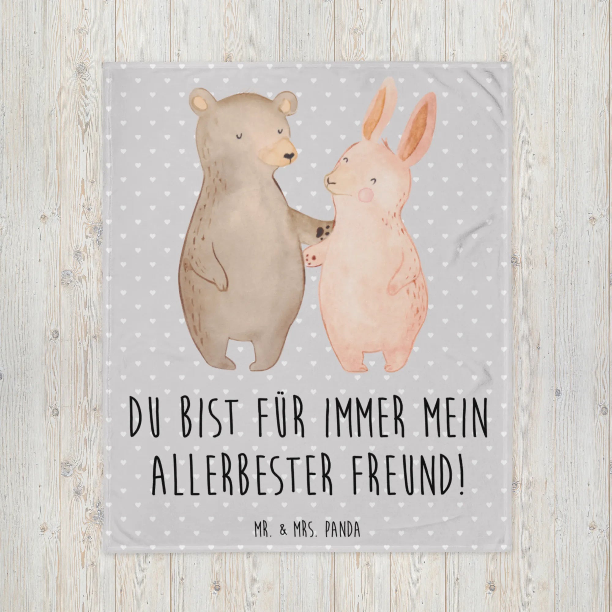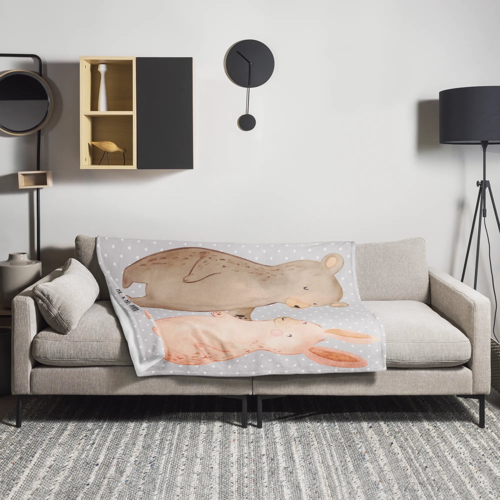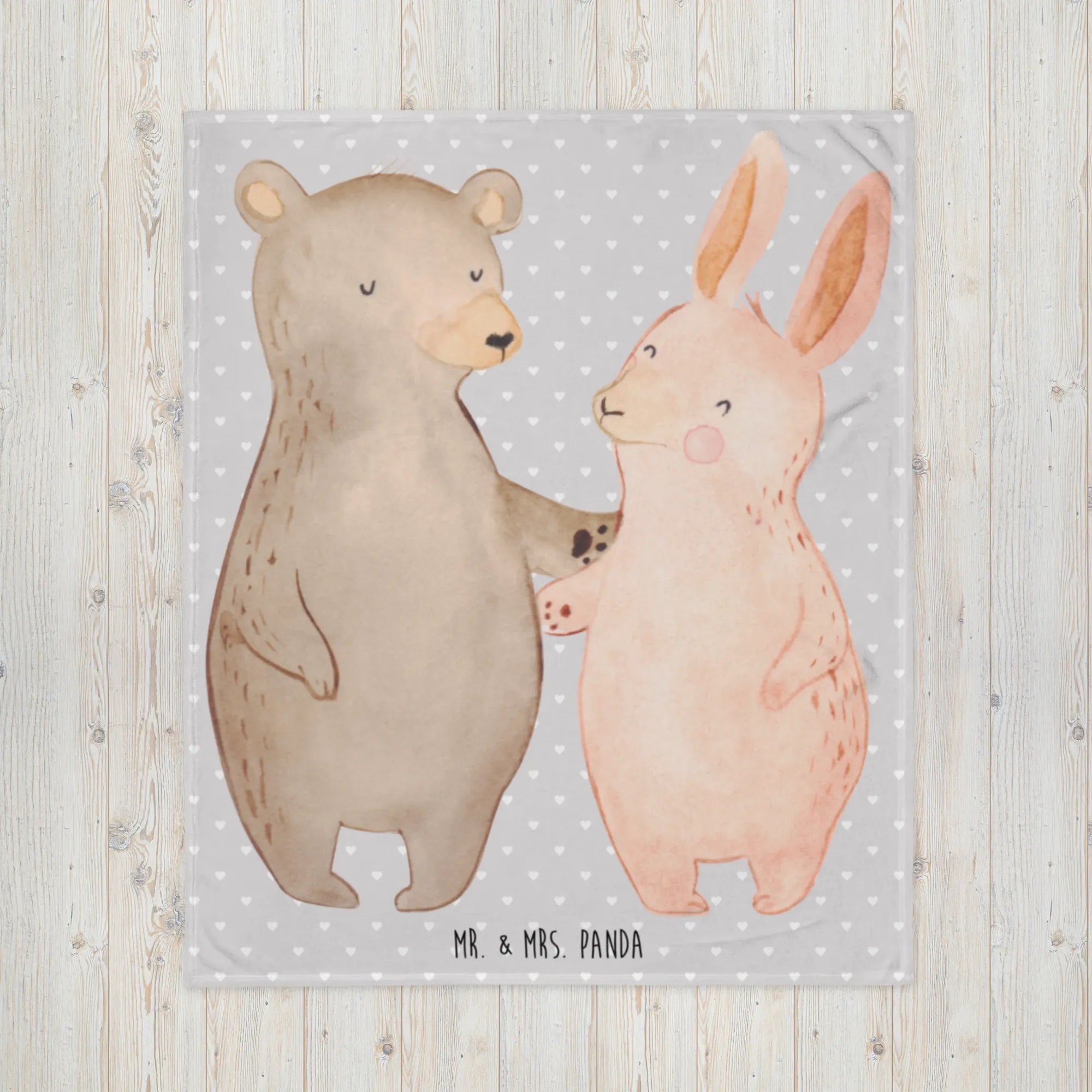 Blanket bear and rabbit Embrace - with a saying - Grey Pastel